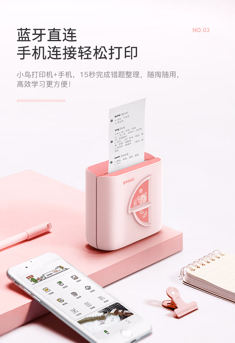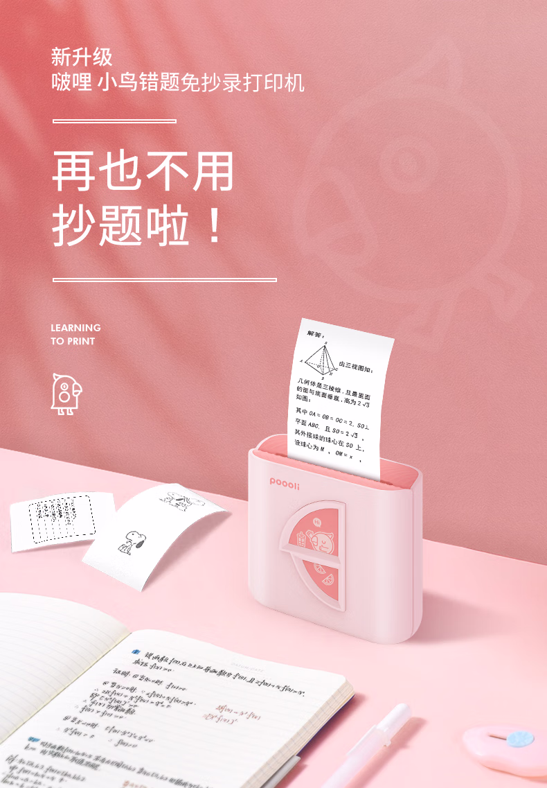 汉印啵哩小鸟L5s五代高清错题打印机答案解析整理学生迷你小型便携式学霸咕咕五代增强款字大错题整理 L5s绿色高清 官方标配