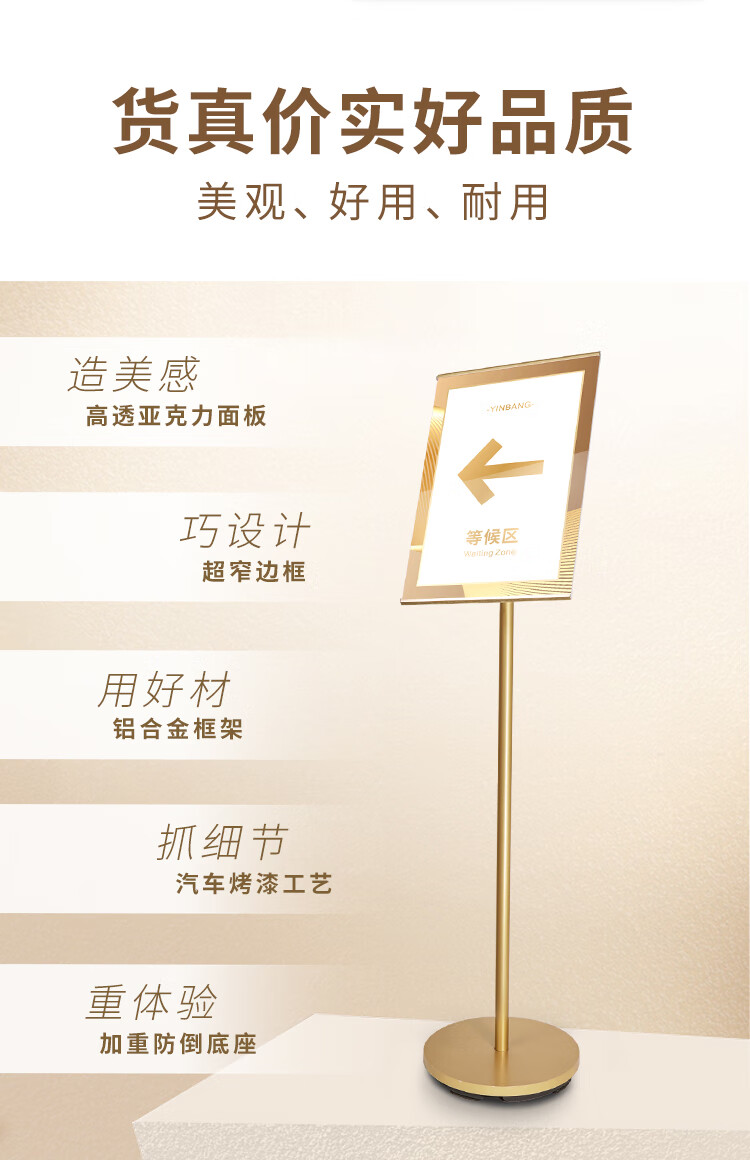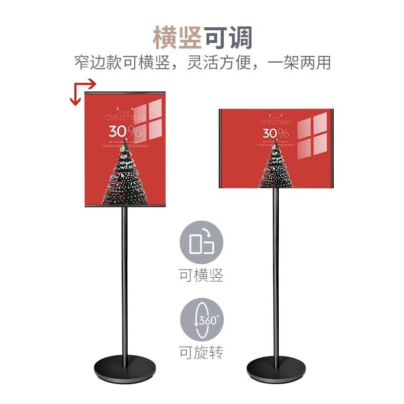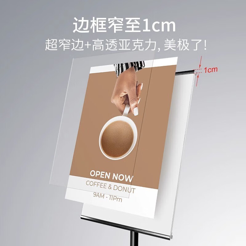 > 印帮 圆底窄边指示牌 立式A4立牌商场医院展示导向牌A3亚克力广告牌 银色(云仓配送) 画板尺寸 A3