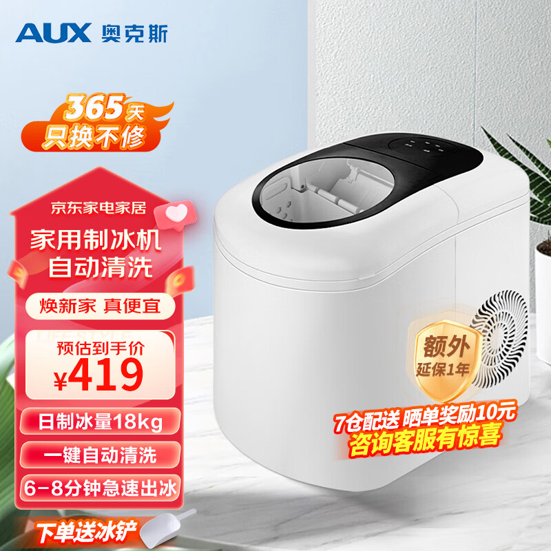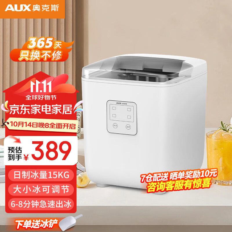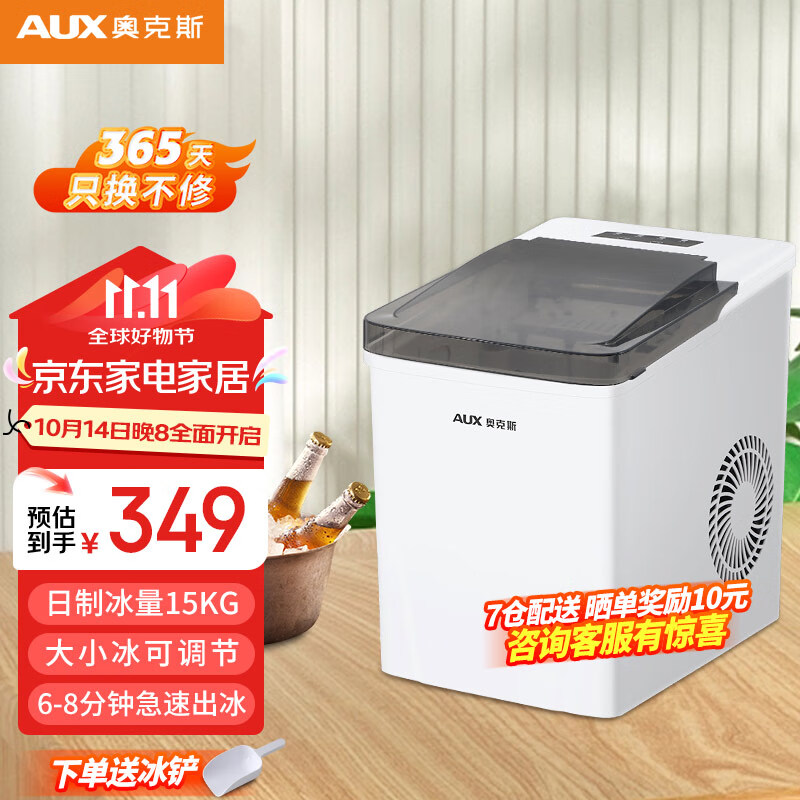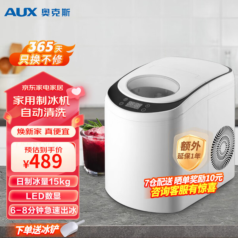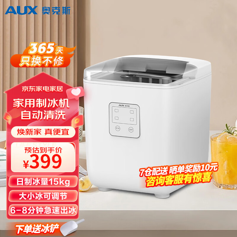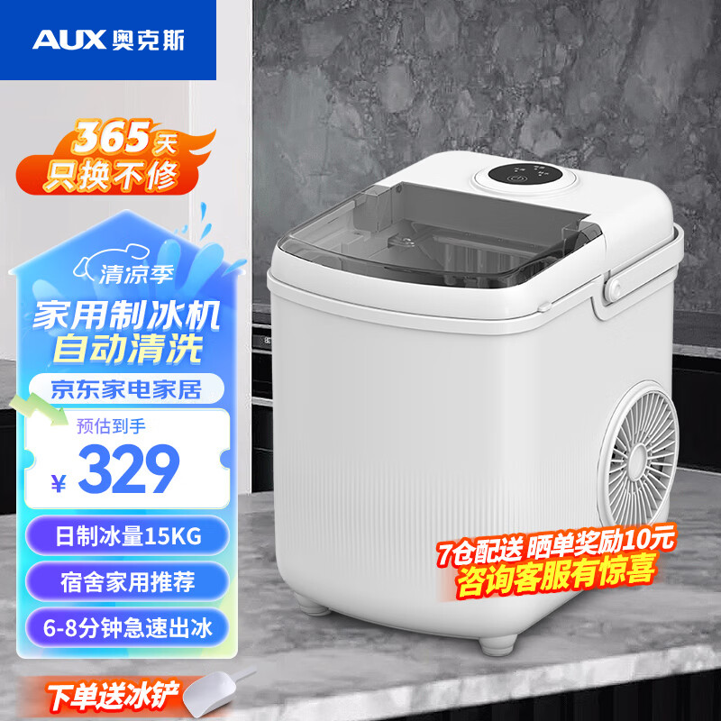 奥克斯(AUX)制冰机家用商用小型迷你15KG全自动制冰机学生宿舍商用奶茶店KTV冰块机可沉可浮子弹冰 23年新款(送冰铲+快速出冰自清洗)