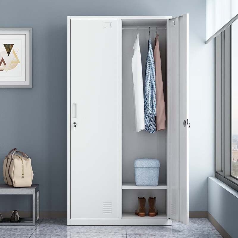 > 信京更衣柜员工柜带锁铁皮储物柜浴室健身房柜子钢制二门衣柜加厚