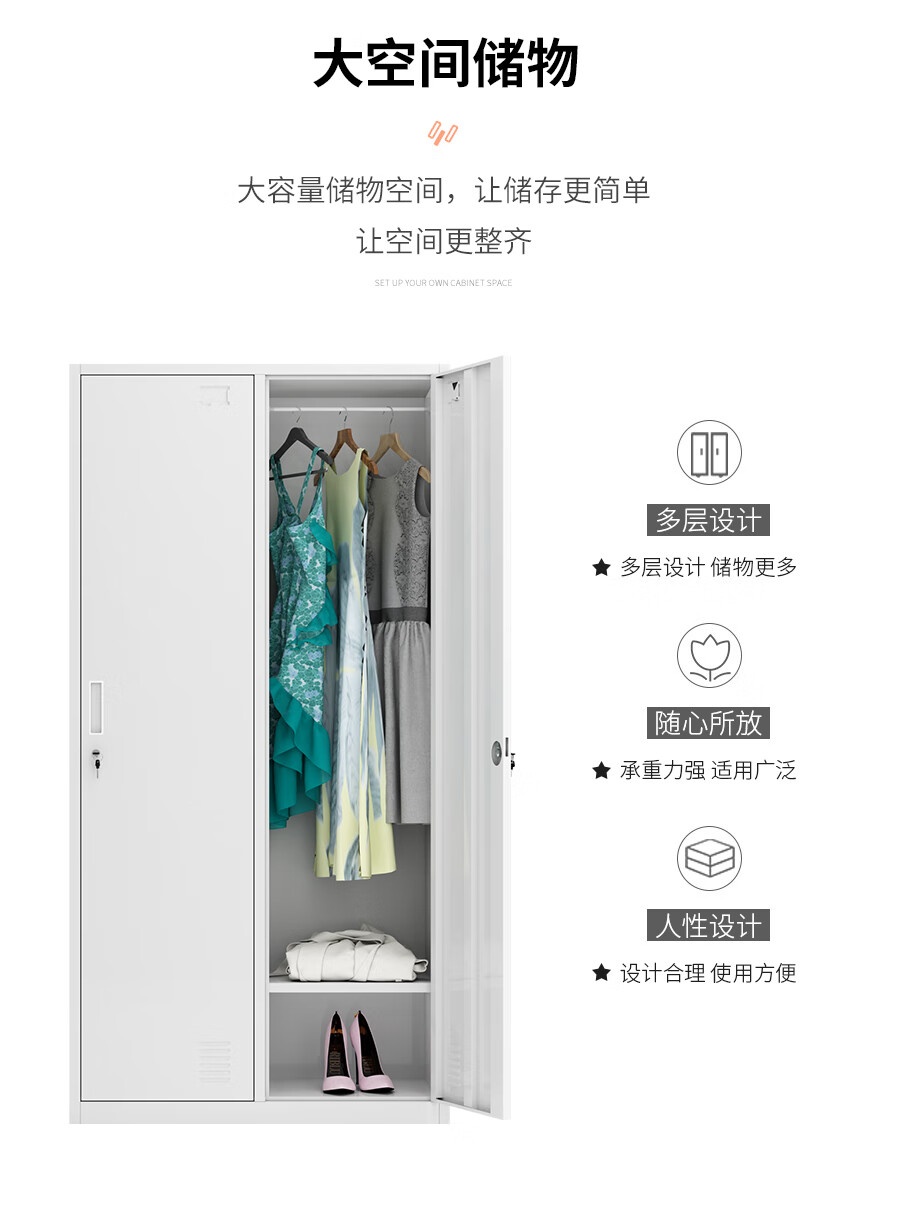 信京更衣柜员工柜带锁铁皮储物柜浴室健身房柜子钢制二门衣柜加厚