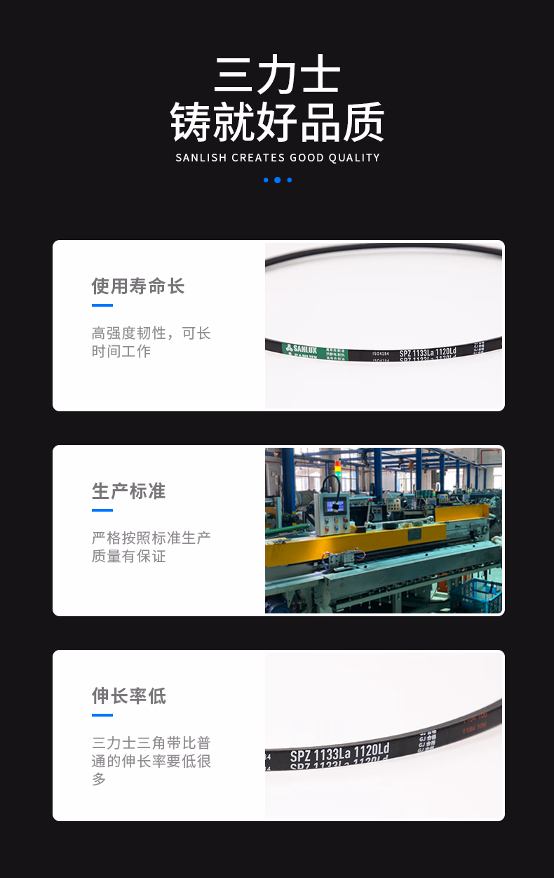 > 三力士三角带大全特种带SPZ785-1050V带传动带橡胶耐磨 SPZ785La 772Ld