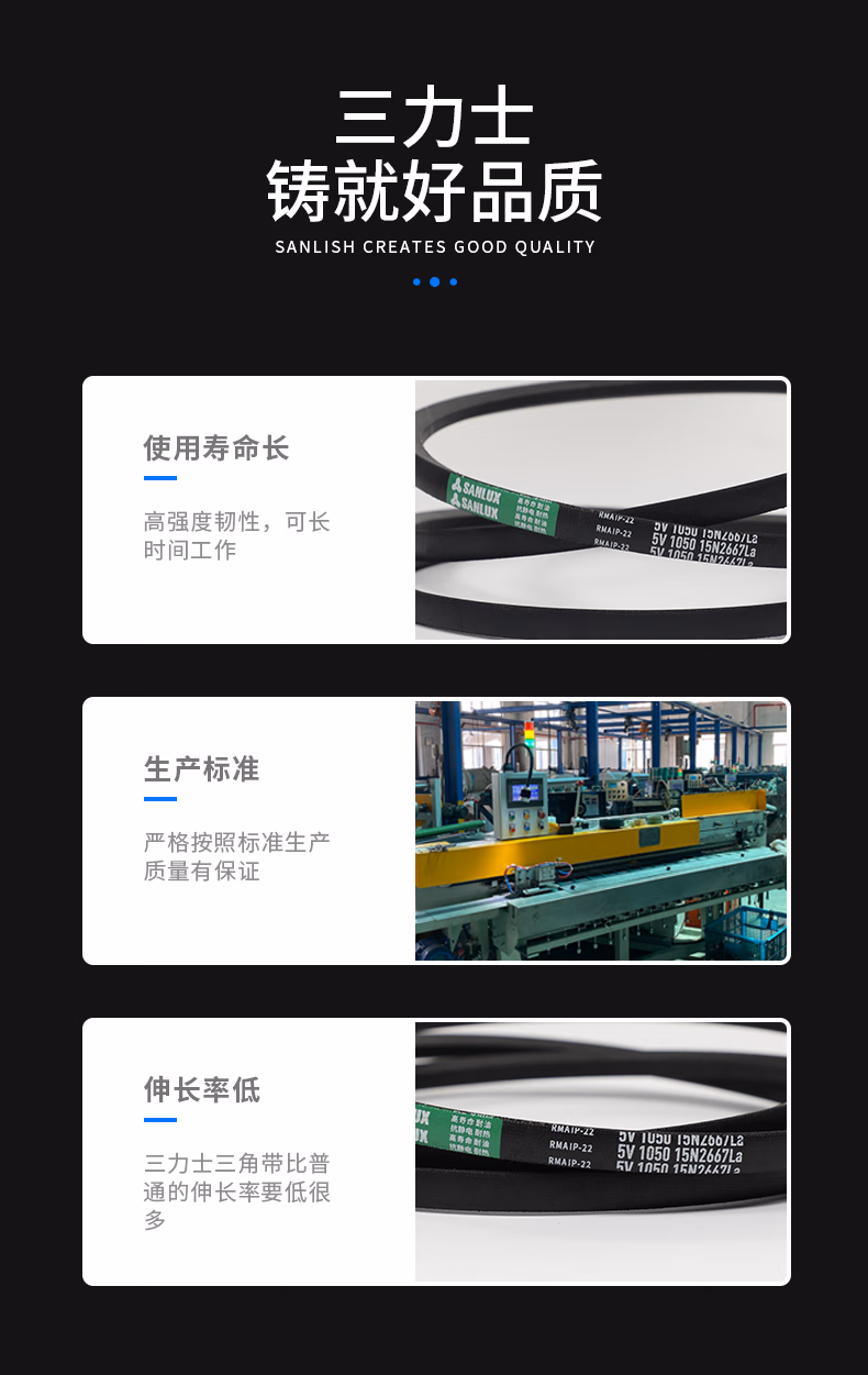 三力士三角带机器工业皮带特种带5V/15N型1118-1524La 5V480 15N1219La