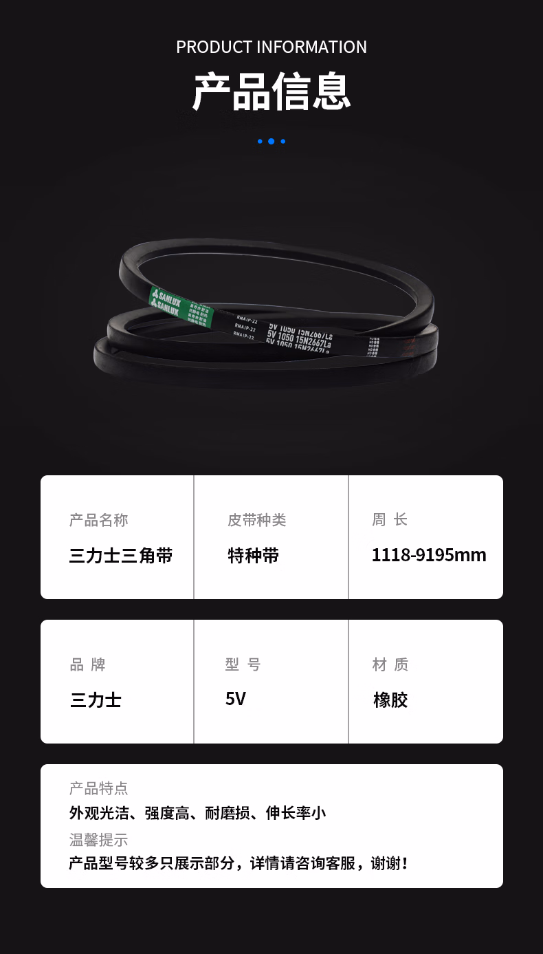 > 三力士三角带机器工业皮带特种带5V/15N型1118-1524La 5V480 15N1219La