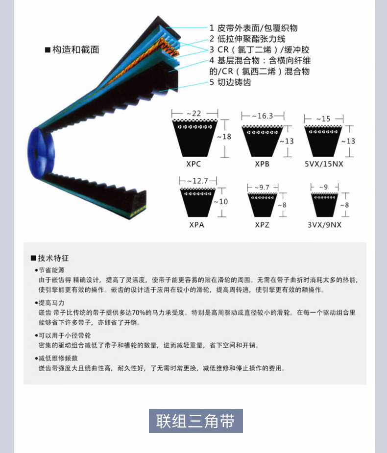 > 三力士(SANLUX)C1000Li---C型1350Li橡胶传动带三角带强力耐磨工业皮带 C1000Li