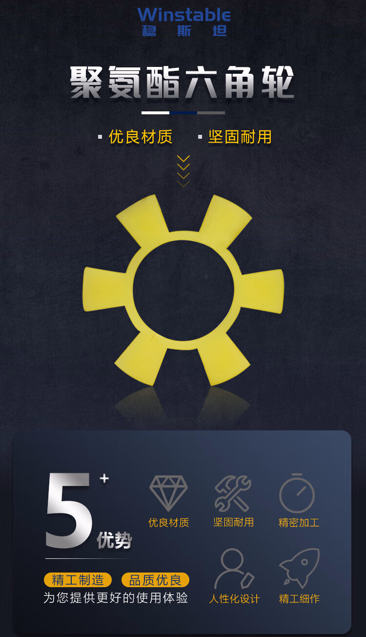 稳斯坦(Winstable)(1个)聚氨酯六角轮 水泵对轮垫弹性垫橡胶块 T150 WST20