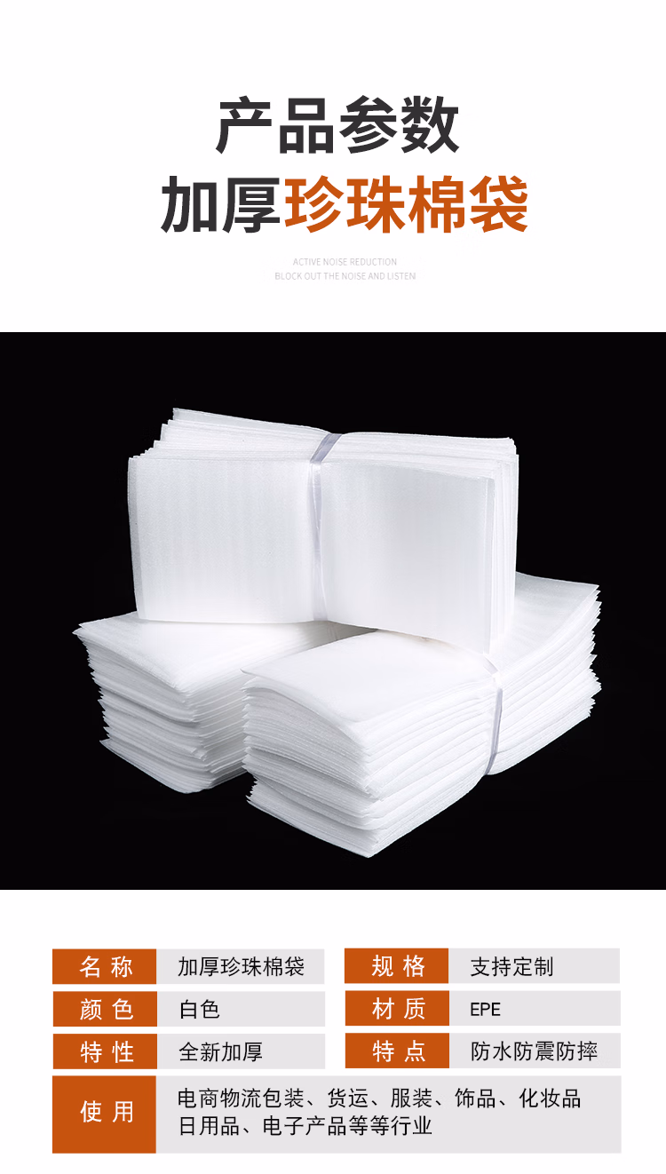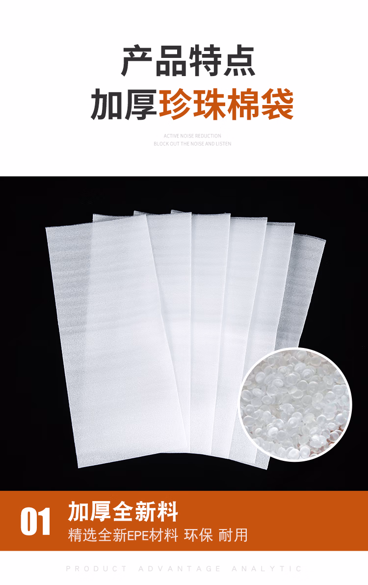 > 贝傅特 珍珠棉袋子 EPE全新料加厚防震覆膜泡沫袋发泡棉包装袋 40*50【100个/捆】