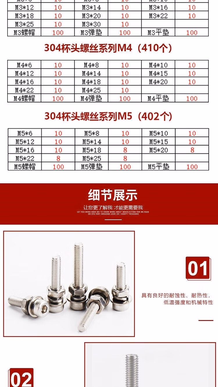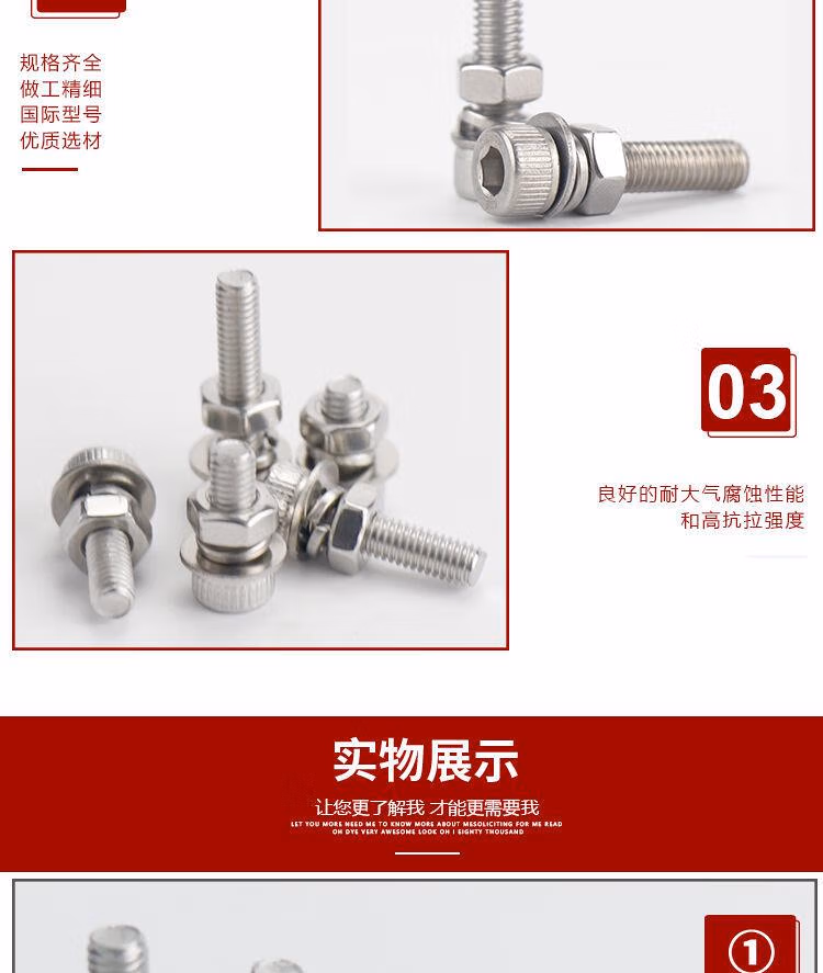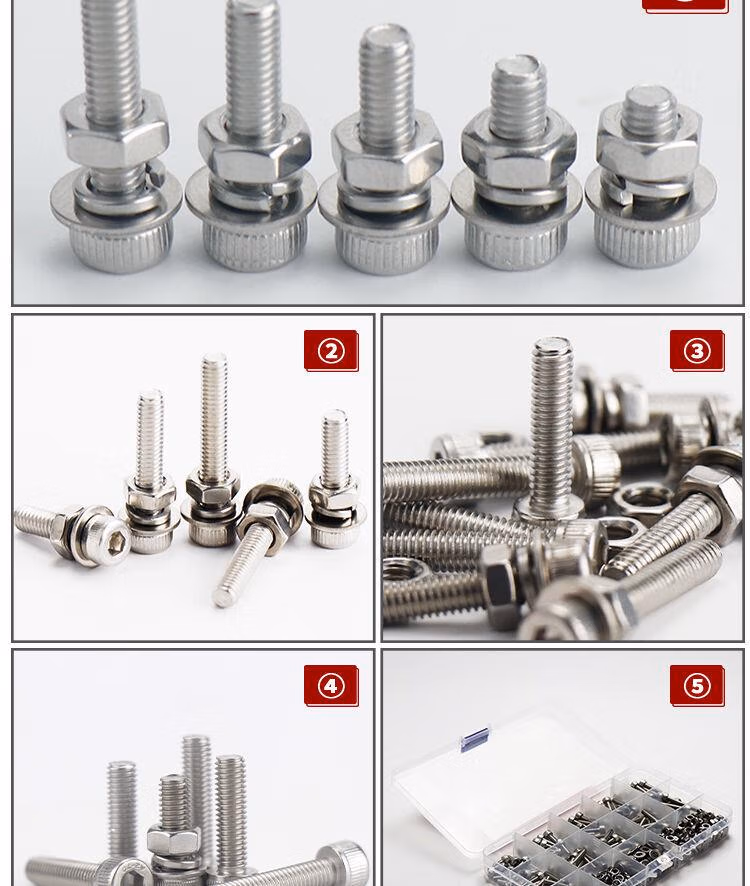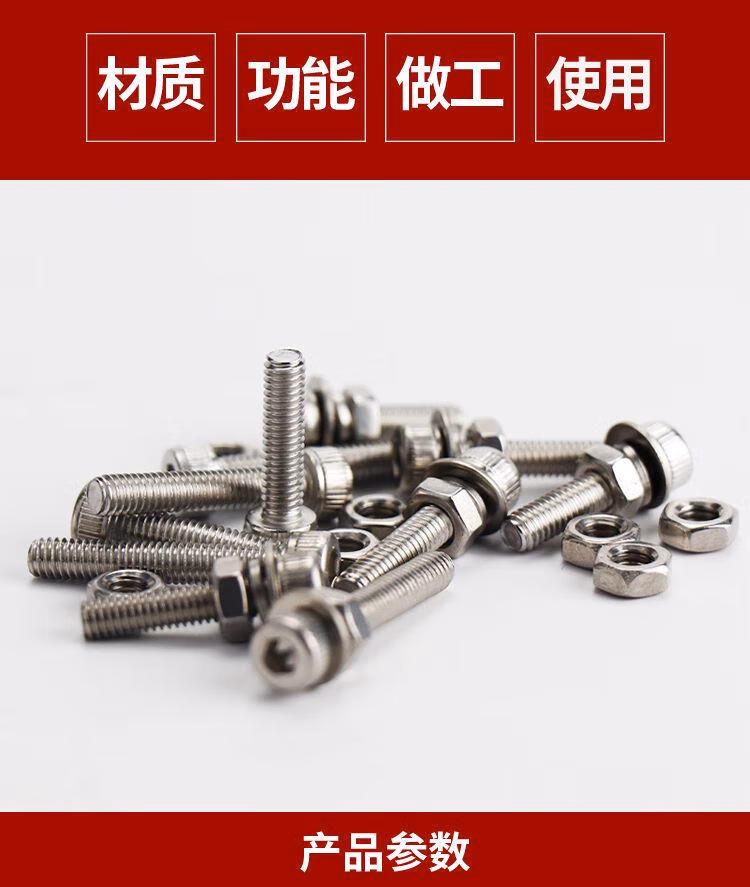 > 固琛定制傅特304不锈钢DIN912杯头内六角螺栓平弹垫螺母四件套杯头 杯头螺丝组合装M4系列