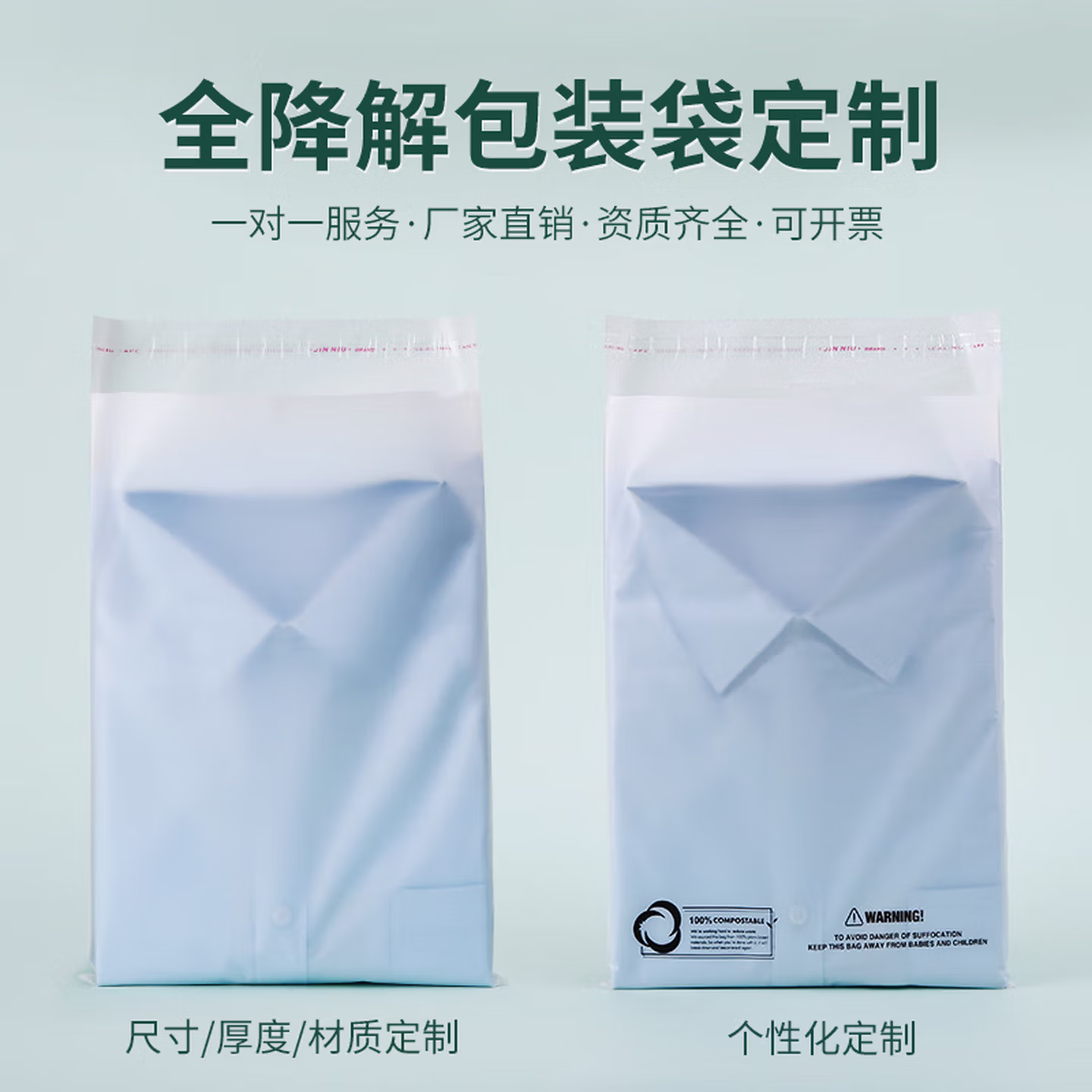 贝傅特 全降解塑料袋 不干胶自粘袋航空毛毯包装袋子可降解环保自封袋 24×(34+4)cm×10丝【100个】