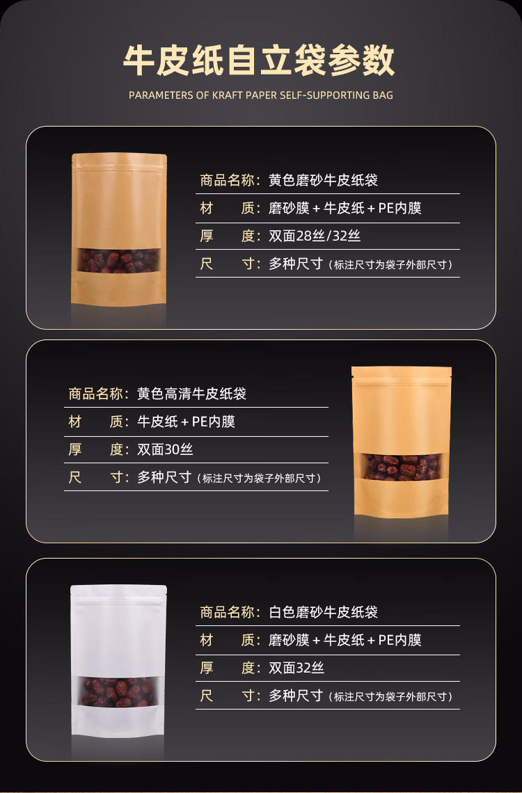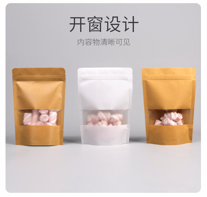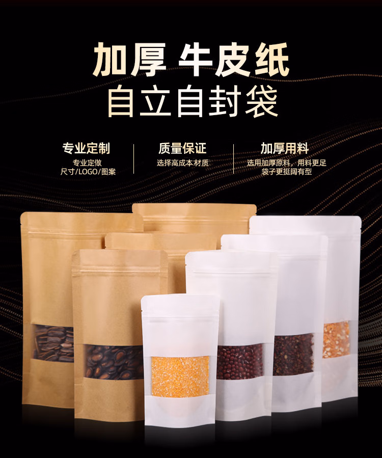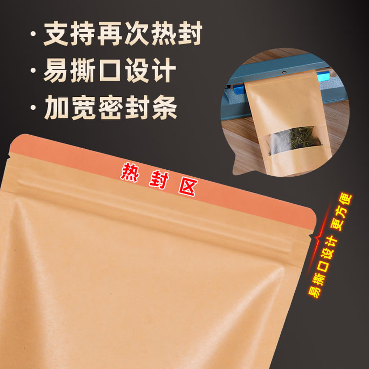 > 贝傅特 牛皮纸自封袋 开窗牛皮纸袋自立自封磨砂袋 黄色磨砂32丝加厚 14x20+4cm100个