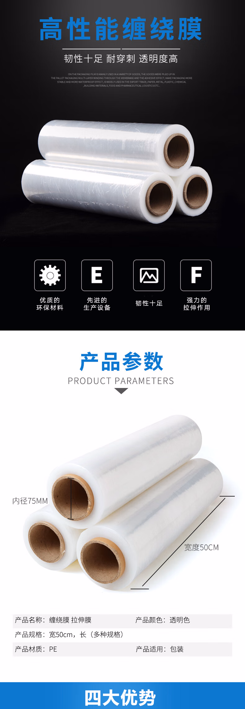 手用50cm宽450米长(约重4kg) 一卷