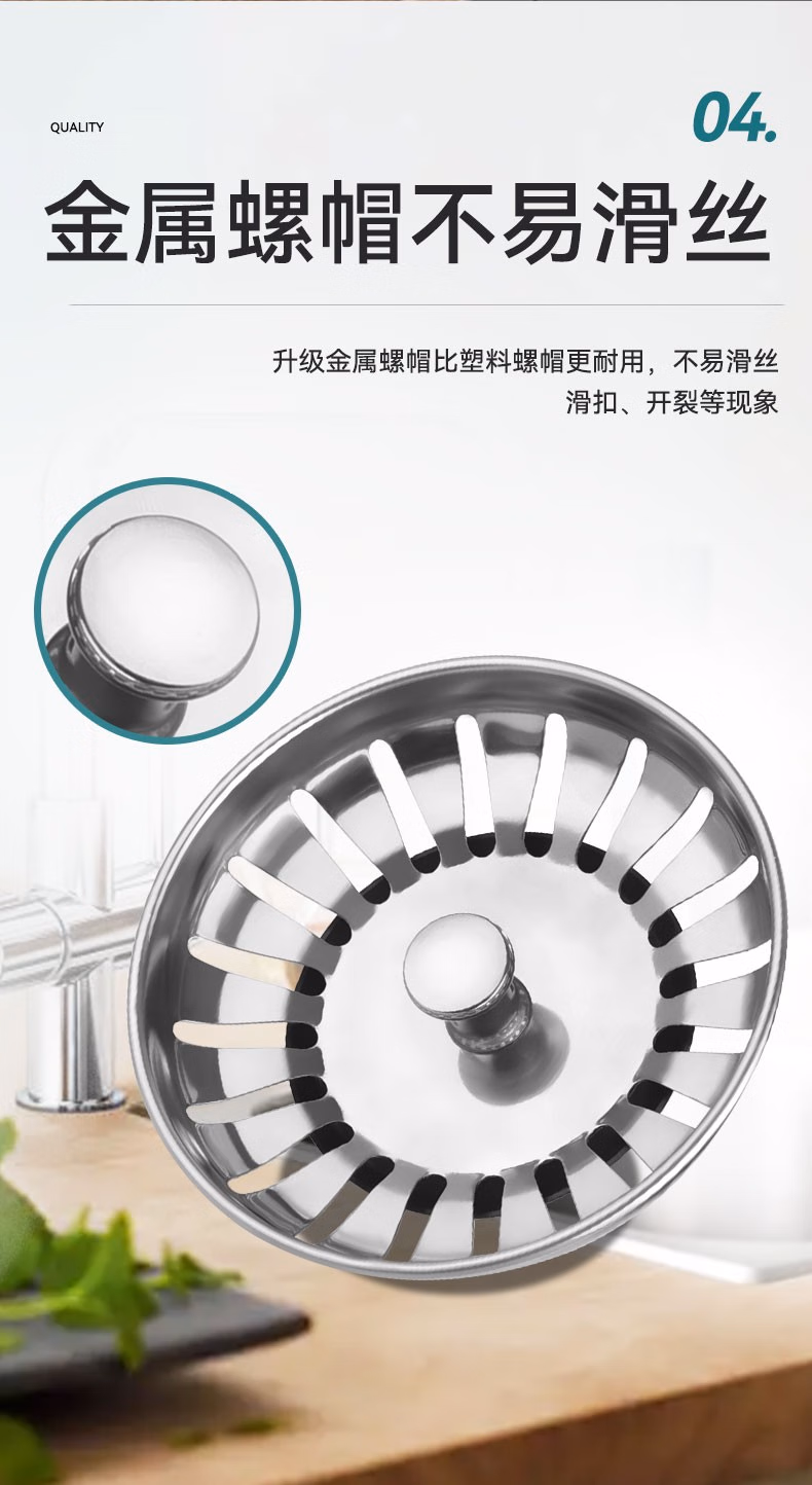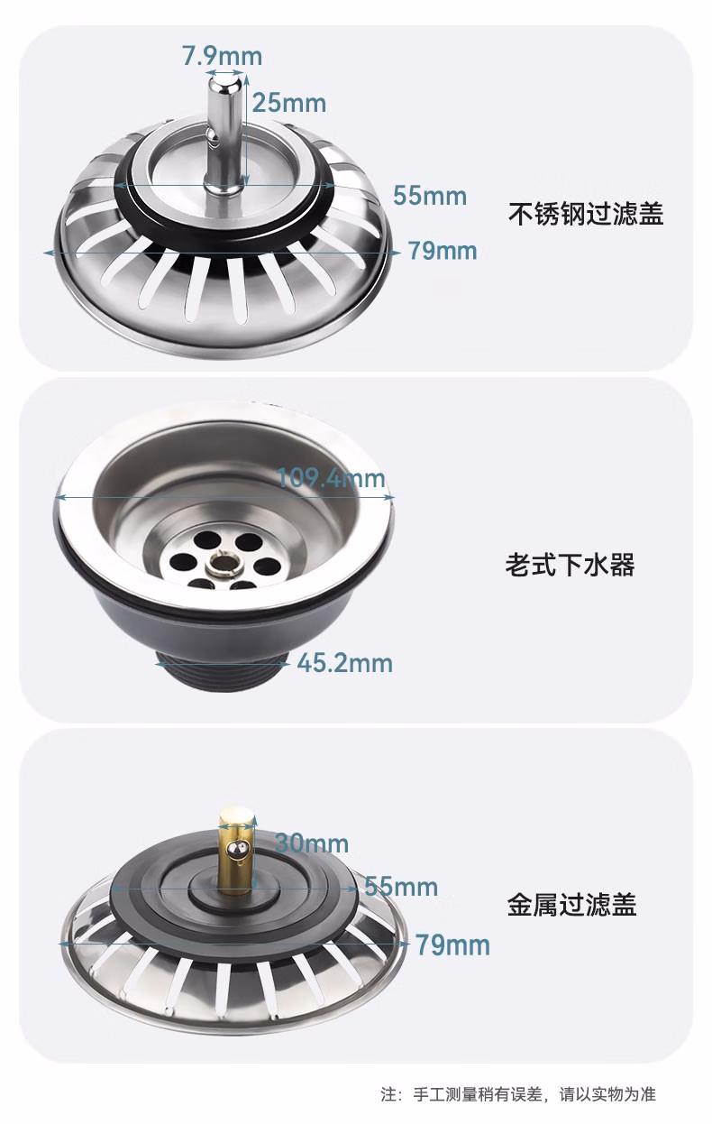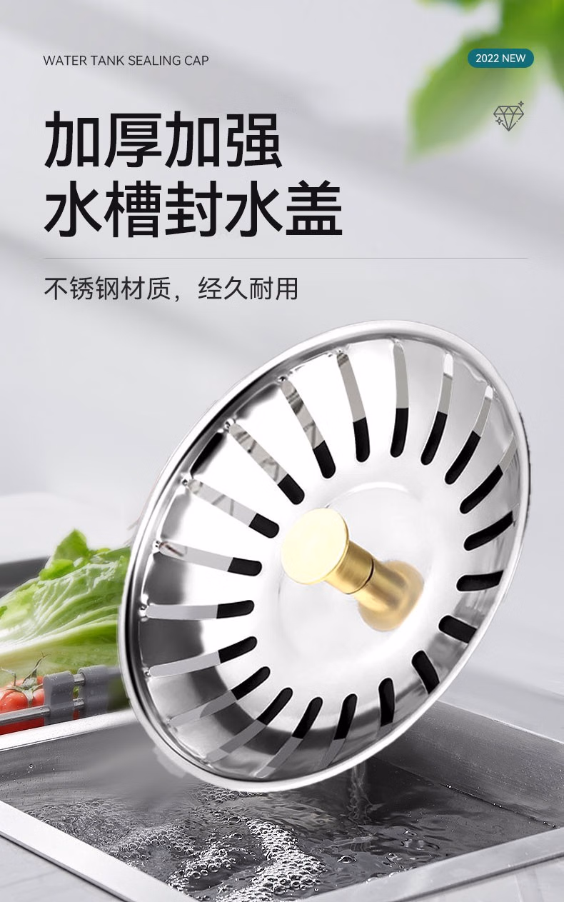 > 山头林村不锈钢水槽老式过滤网厨房洗碗盆储水盖塞头堵漏洗菜水池下水塞子 不锈钢普通款1个装
