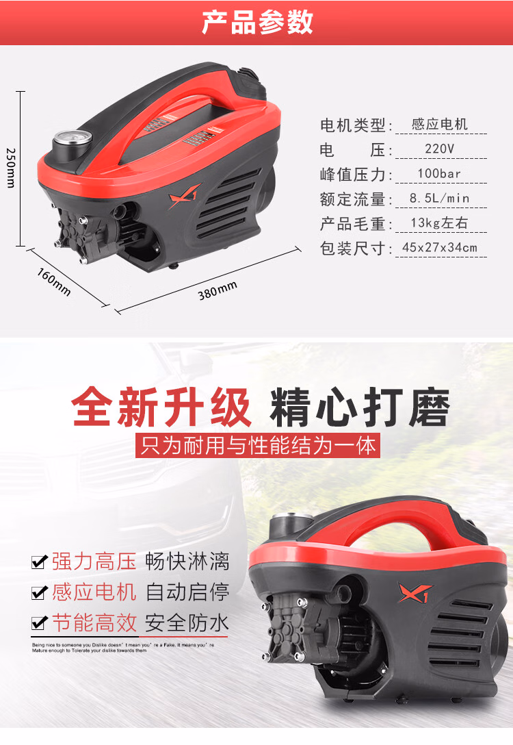 何佳功翔贸X1家用清洗机220v便携车载洗车神器自动高压水泵家 X1裸机无配件