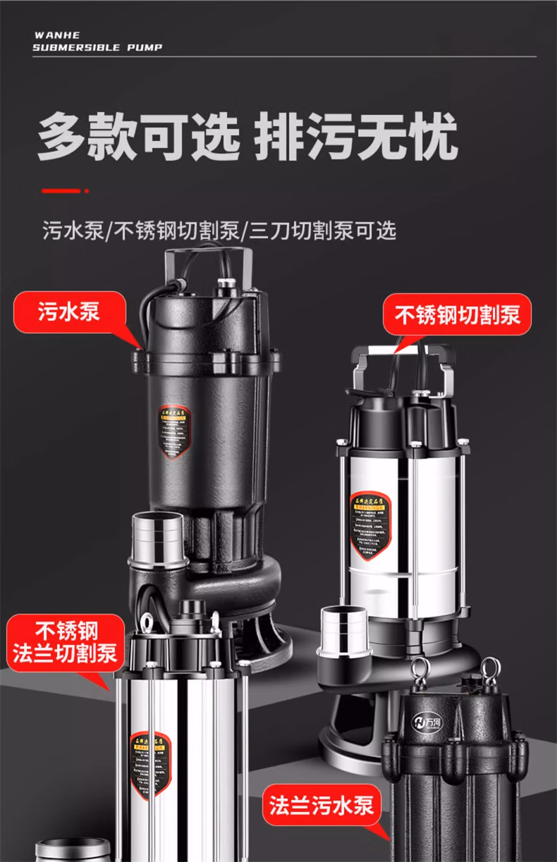 > 切割式污水泵家用抽化粪池抽粪厕所泥浆排污泵不锈钢切割泵潜水泵 7500w380v【不锈钢】带保护4寸