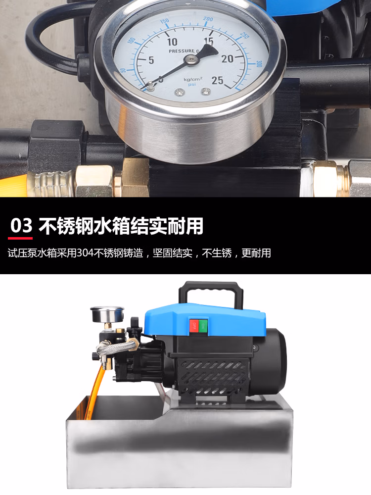 > 电动试压泵便携式DSY-25公斤双缸大流量地暖管道水管测机打压定制 不锈钢款电动试压泵(12公斤型)