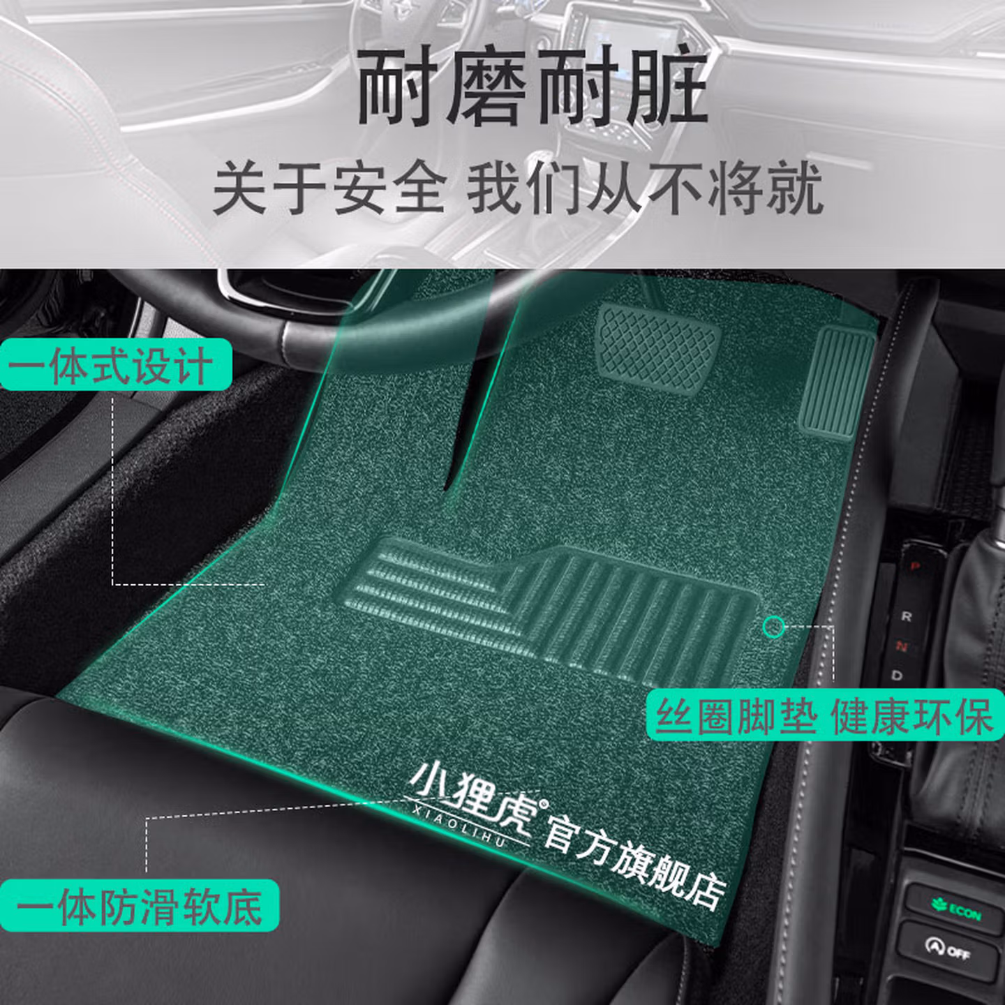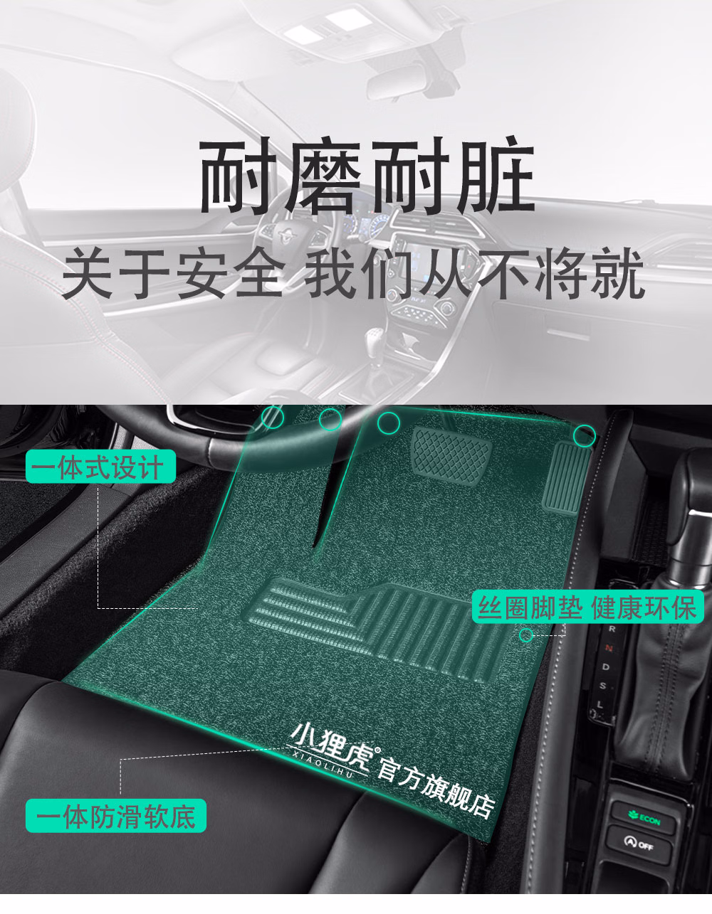 > 小狸虎汽车丝圈脚垫通用款主驾驶单片车垫易清洗上层五座车垫子地毯式 黑色【下单备注车型车款】 副驾位【加厚款约20MM】