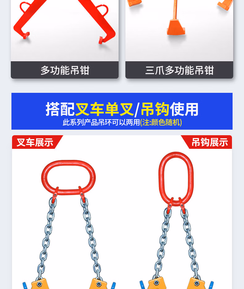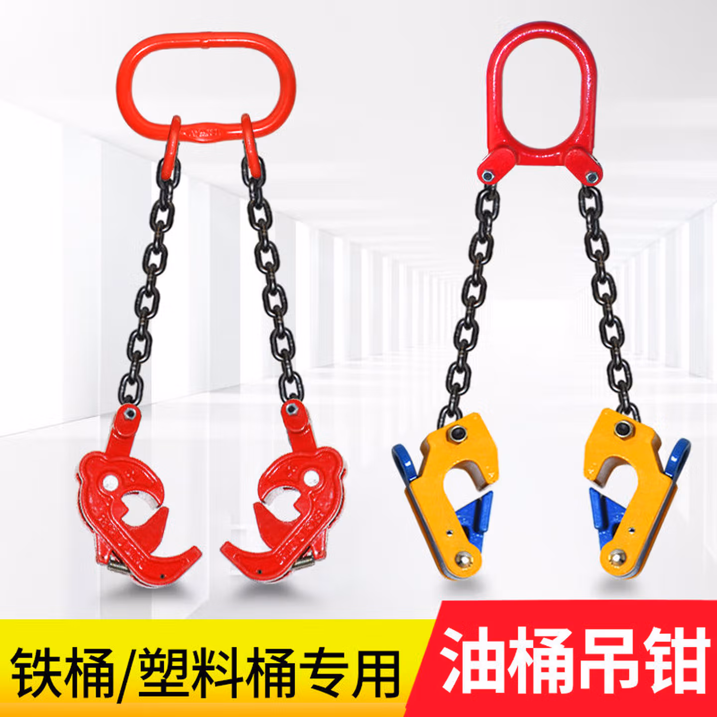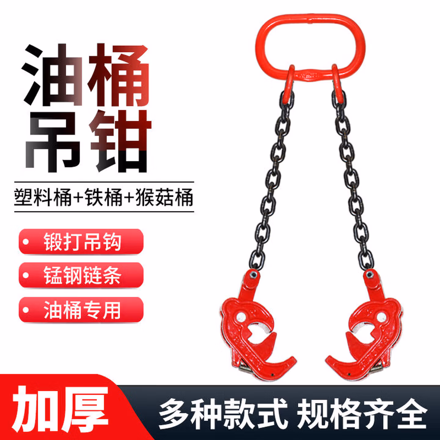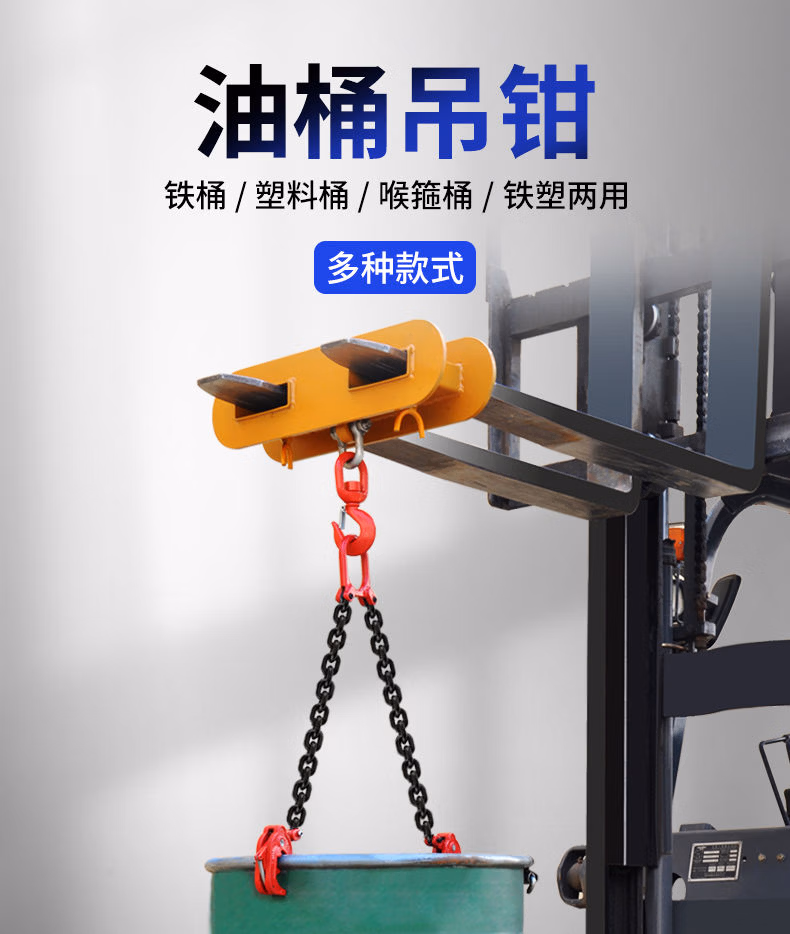 > 劲友油桶吊钳吊钩子吊具吊夹起重钳叉车专用卸油桶吊钩夹子双链条挂钩 叉车款双链1吨-大钳体铁塑两用