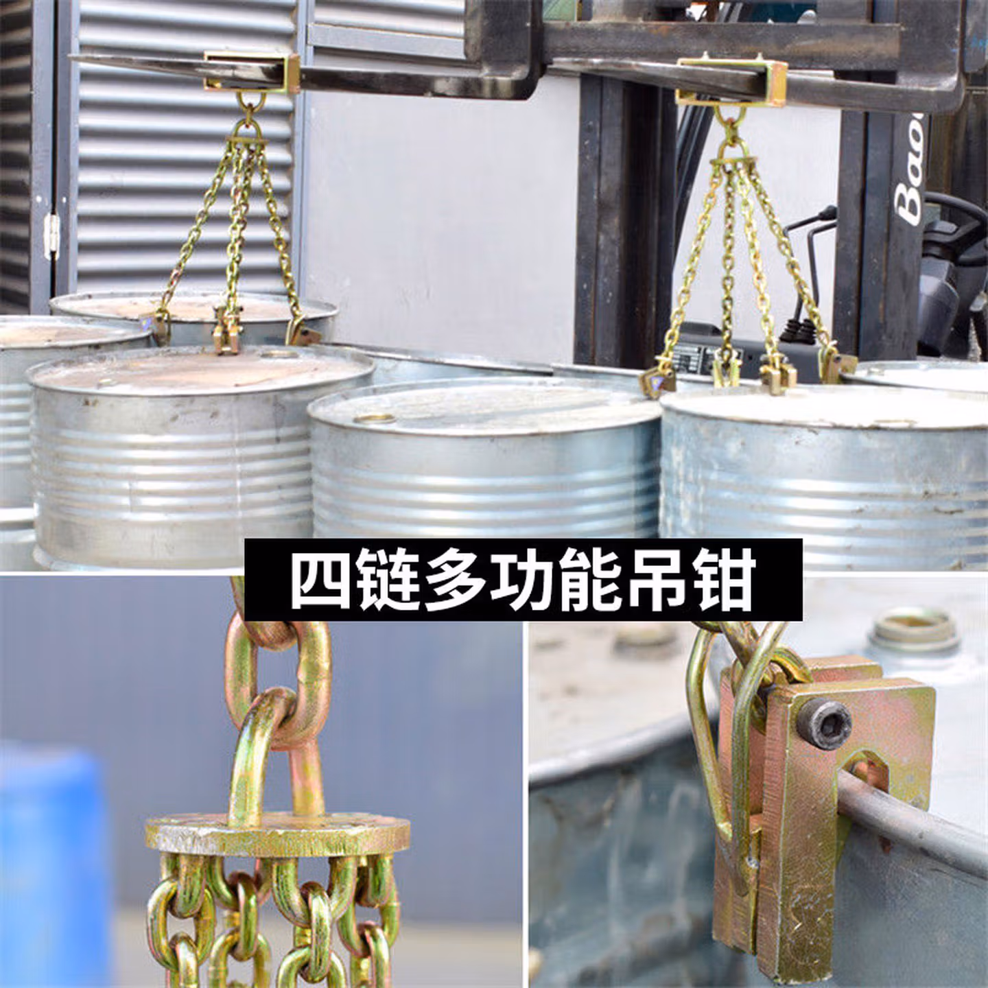 劲友油桶吊钳吊钩子吊具吊夹起重钳叉车专用卸油桶吊钩夹子双链条挂钩 叉车款双链1吨-大钳体铁塑两用