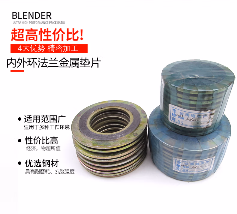 D型法兰垫DN15-DN200碳钢内外环金属缠绕垫片金属石墨法兰垫高温高压法兰密封垫片 DN40-D1221型PN10/16/25/40