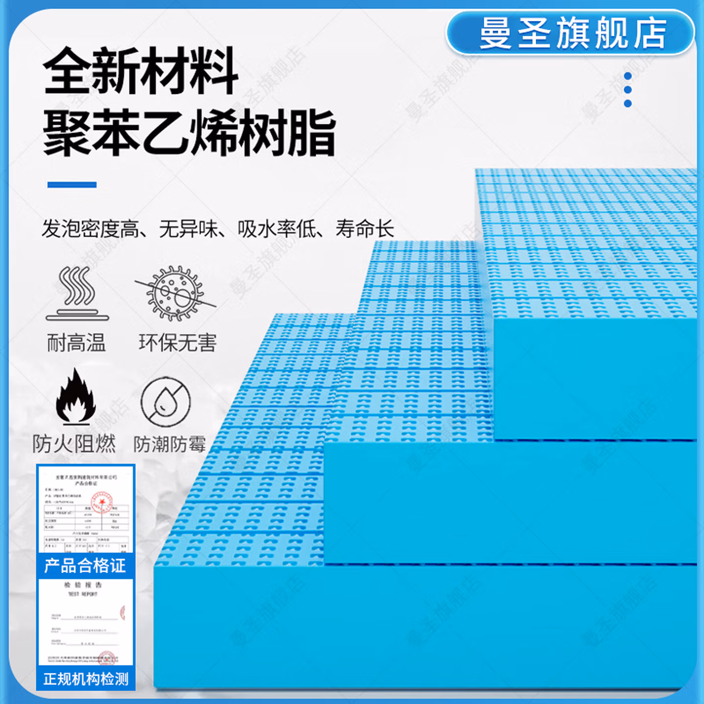 曼圣 高密度XPS挤塑板保温板外墙屋顶室内阻燃泡沫板隔热板地暖保温板 B2级阻燃【6厘米厚】60*120cm