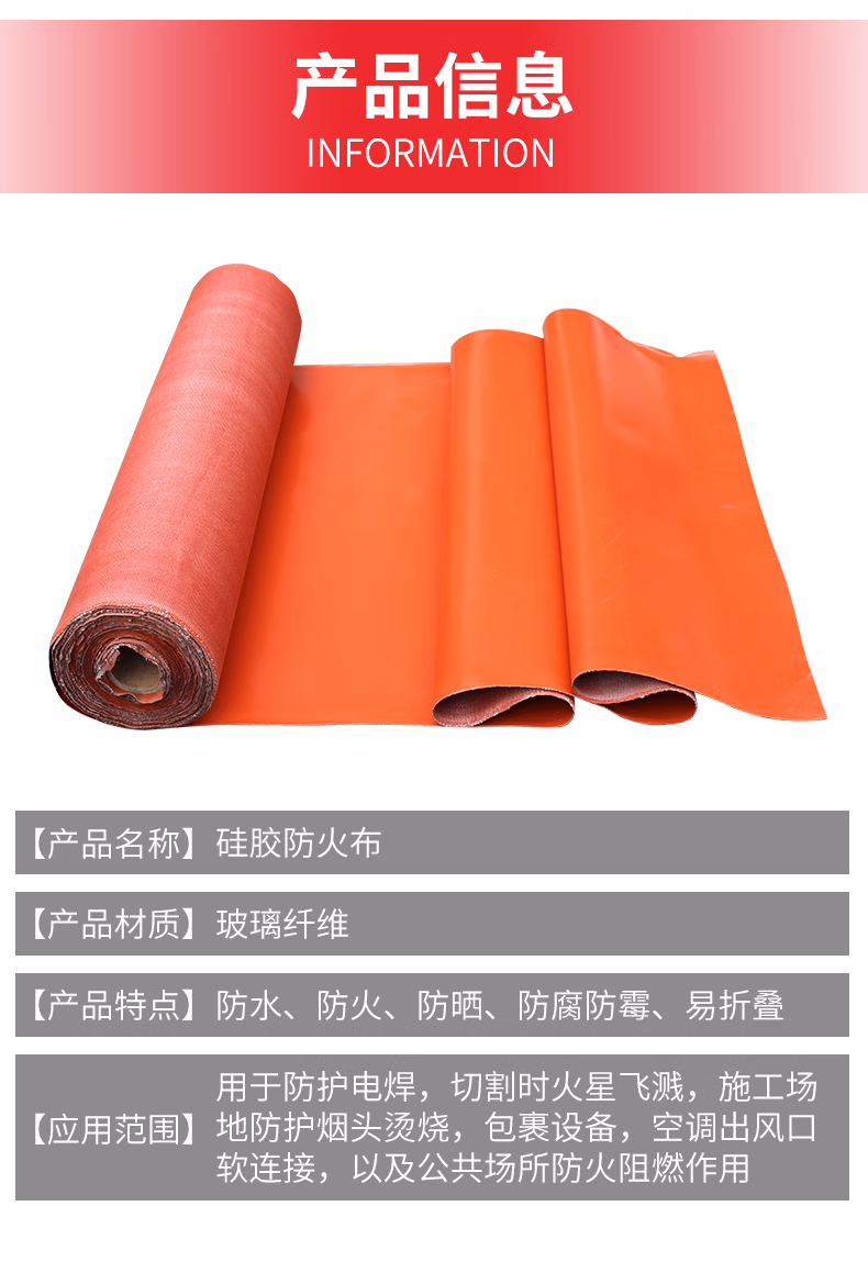 > 鑫兴盛防火布硅胶阻燃布耐高温隔热帆布电焊布隔热硅钛合金软连接玻璃纤 红色硅胶布1米宽0.35mm厚*50米