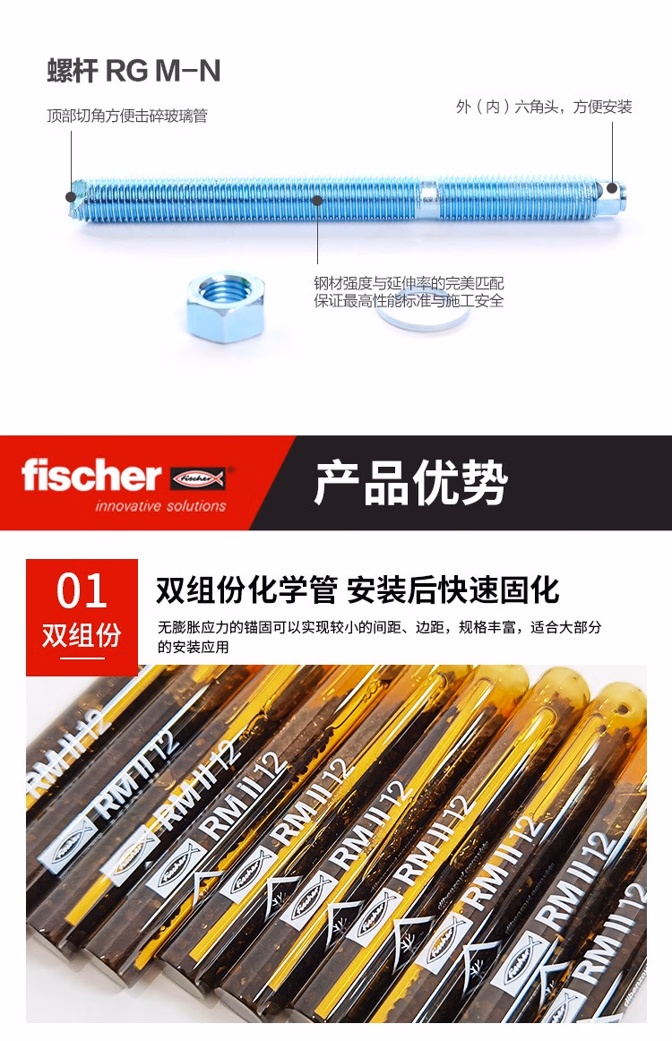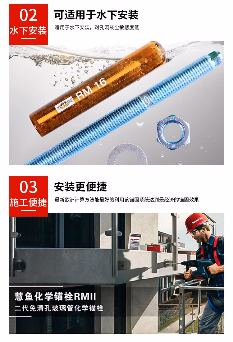 > 加固博士慧鱼德国进口化学锚栓高强度不锈钢螺杆膨胀药剂螺丝M8M12M16M20 RGM8*110(药剂+螺杆)