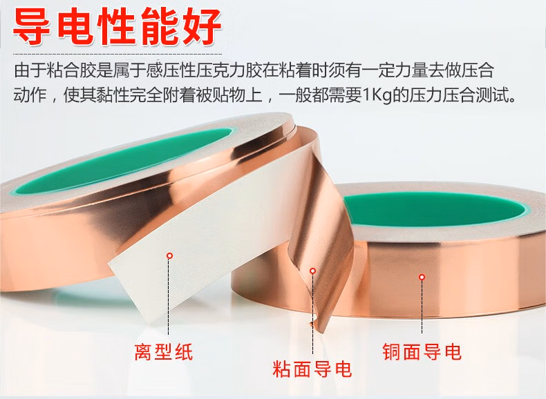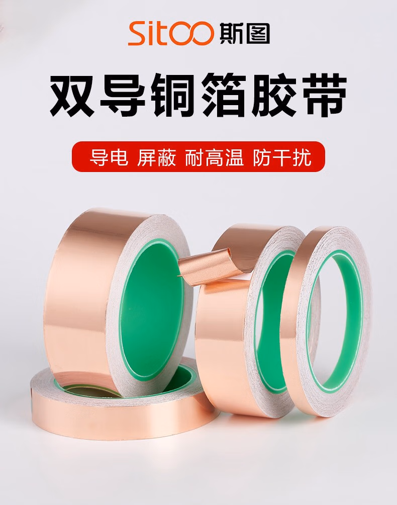 > 斯图(sitoo)双导铜箔纸胶带耐高温导电布胶带纯铜双面导电手机散热铜箔贴纸信号加强屏蔽胶带 40mm宽*20米长