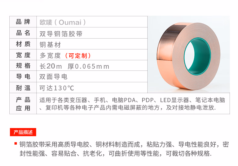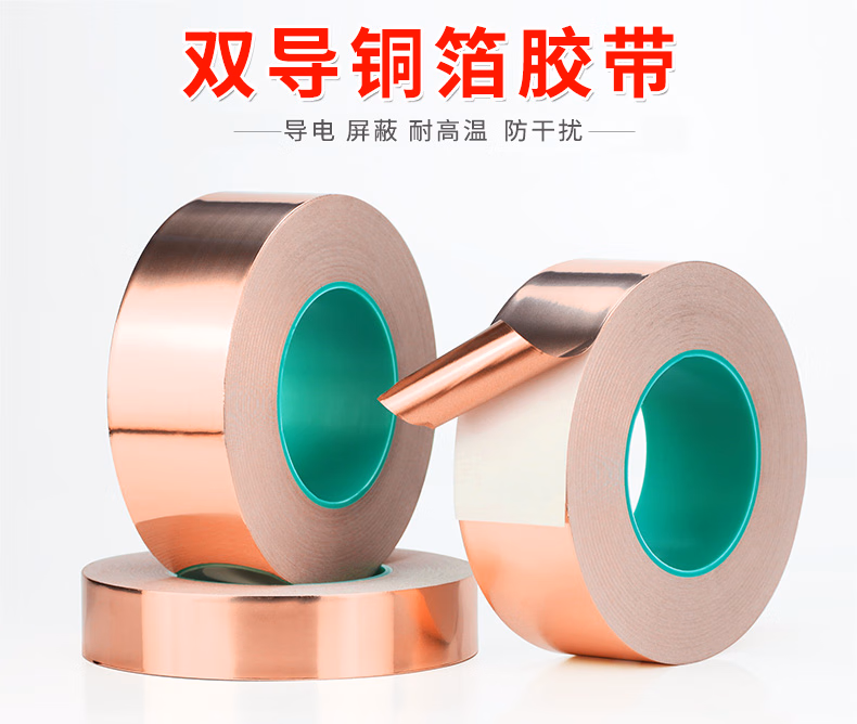 > 欧唛(oumai)双面铜箔胶带导电胶布纯铜耐高温信号增强屏蔽胶带散热铜箔贴纸双导铜箔胶带50mm*20米 1卷