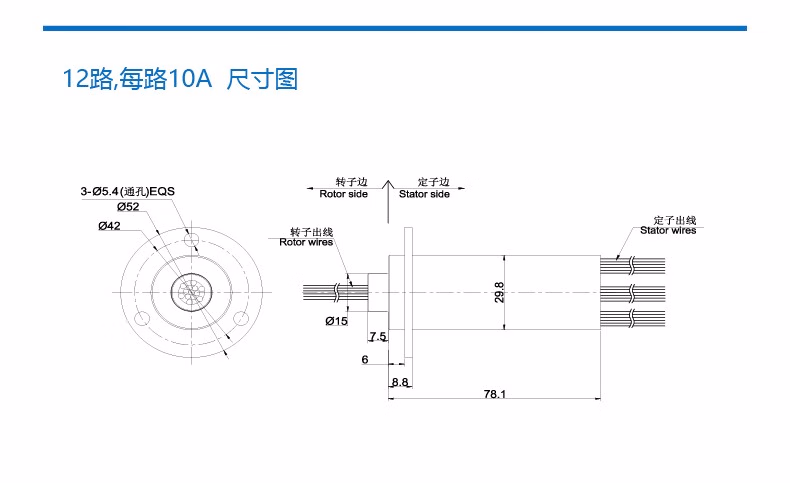 大电流滑环导电2 4 6至12路 旋转电刷碳刷系列 导电环 大功率集电环 12路,每路10A