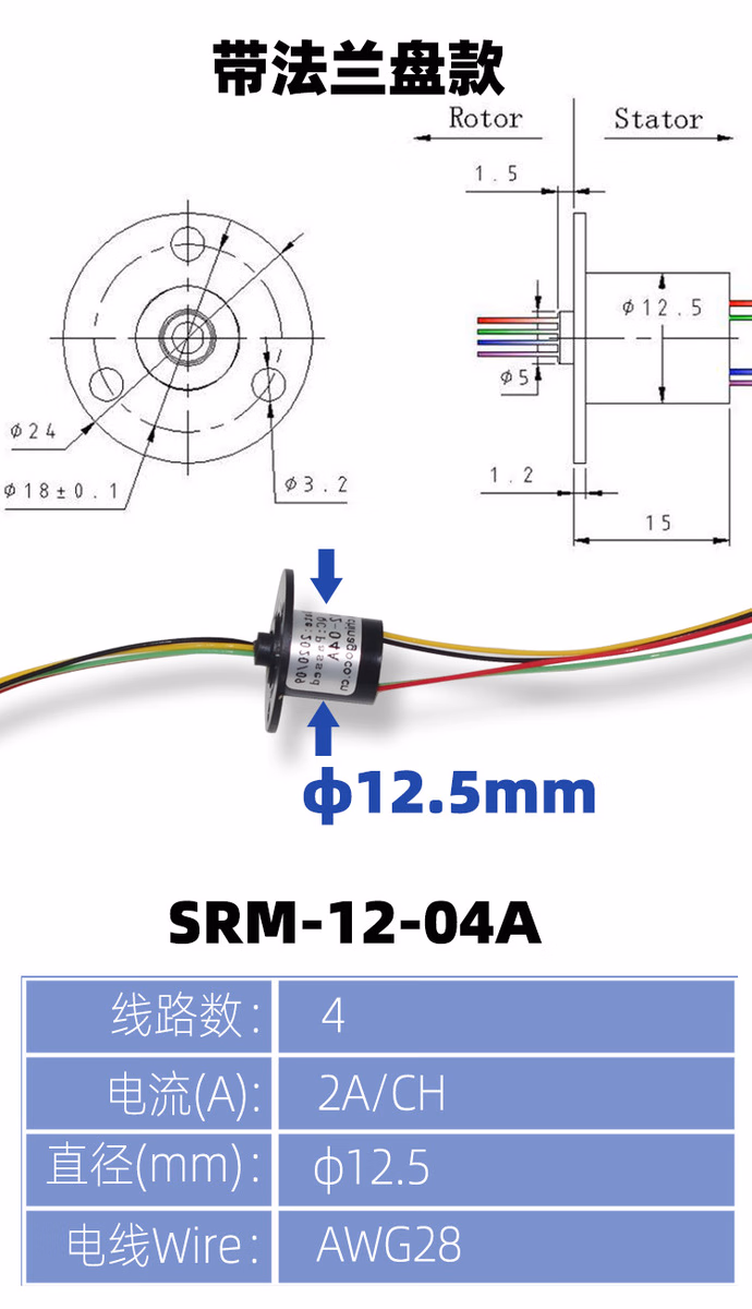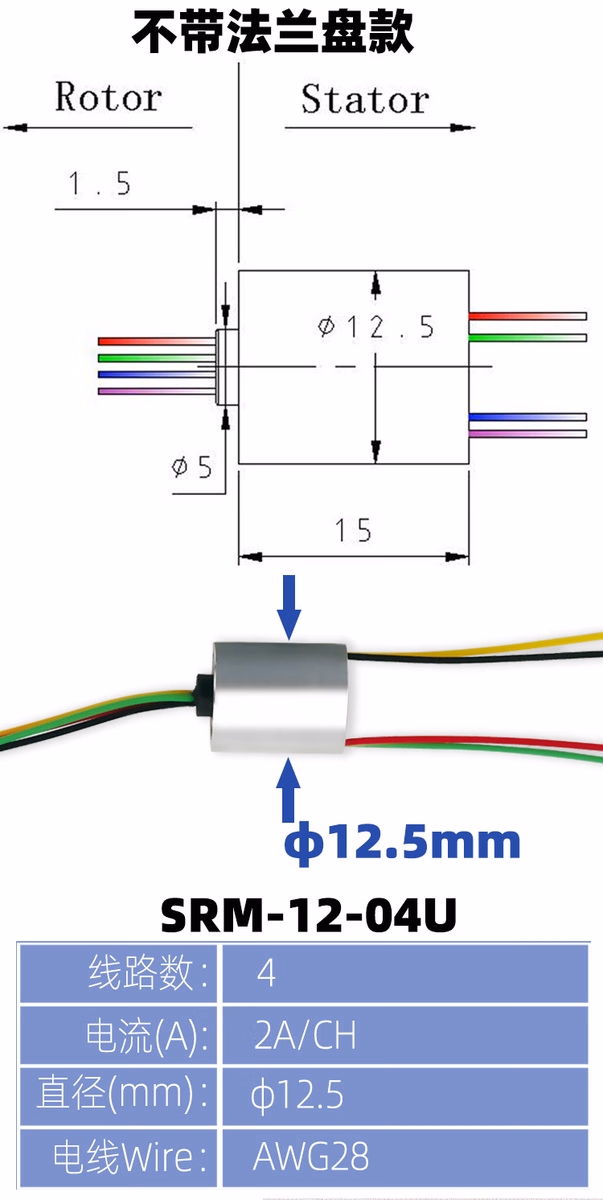 > 可视电滑环锚鱼高速滑环渔轮专用电环4路2A金属滑环 不带法兰盘款4路2A