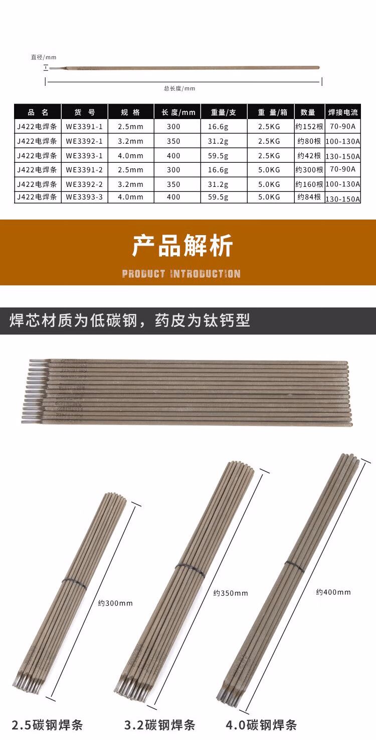 > 卡夫威尔 J422电焊条2.5直径2.5*300mm2.5KG装 WE3391-1