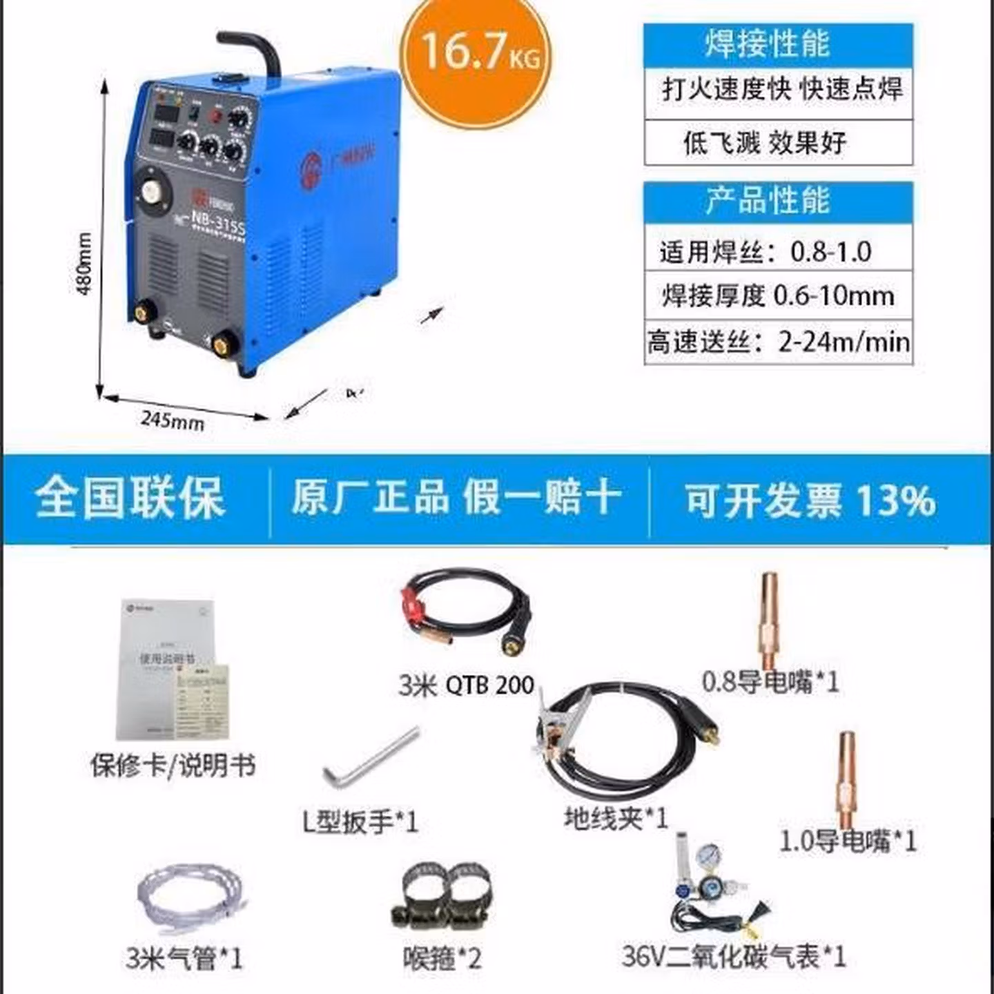 烽火二保焊机NB250 270一体机家用220v/380V双电压气保焊机 NB 280 不用气