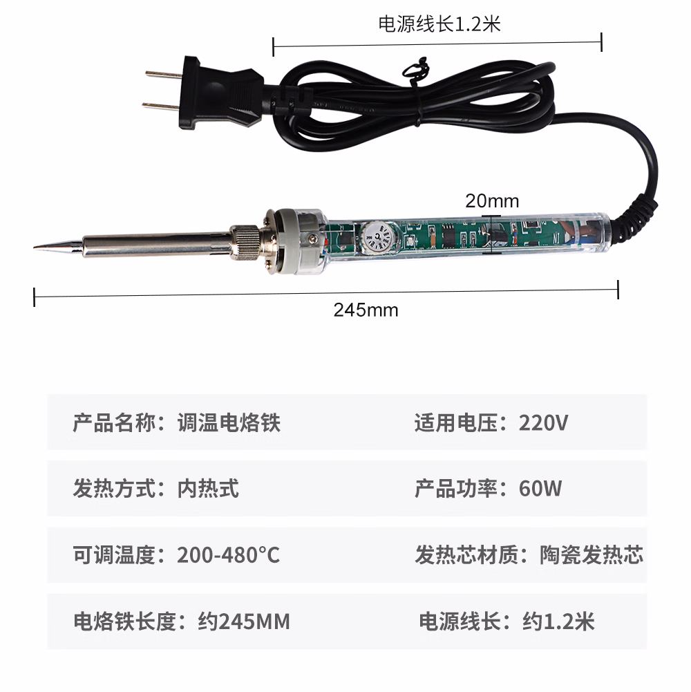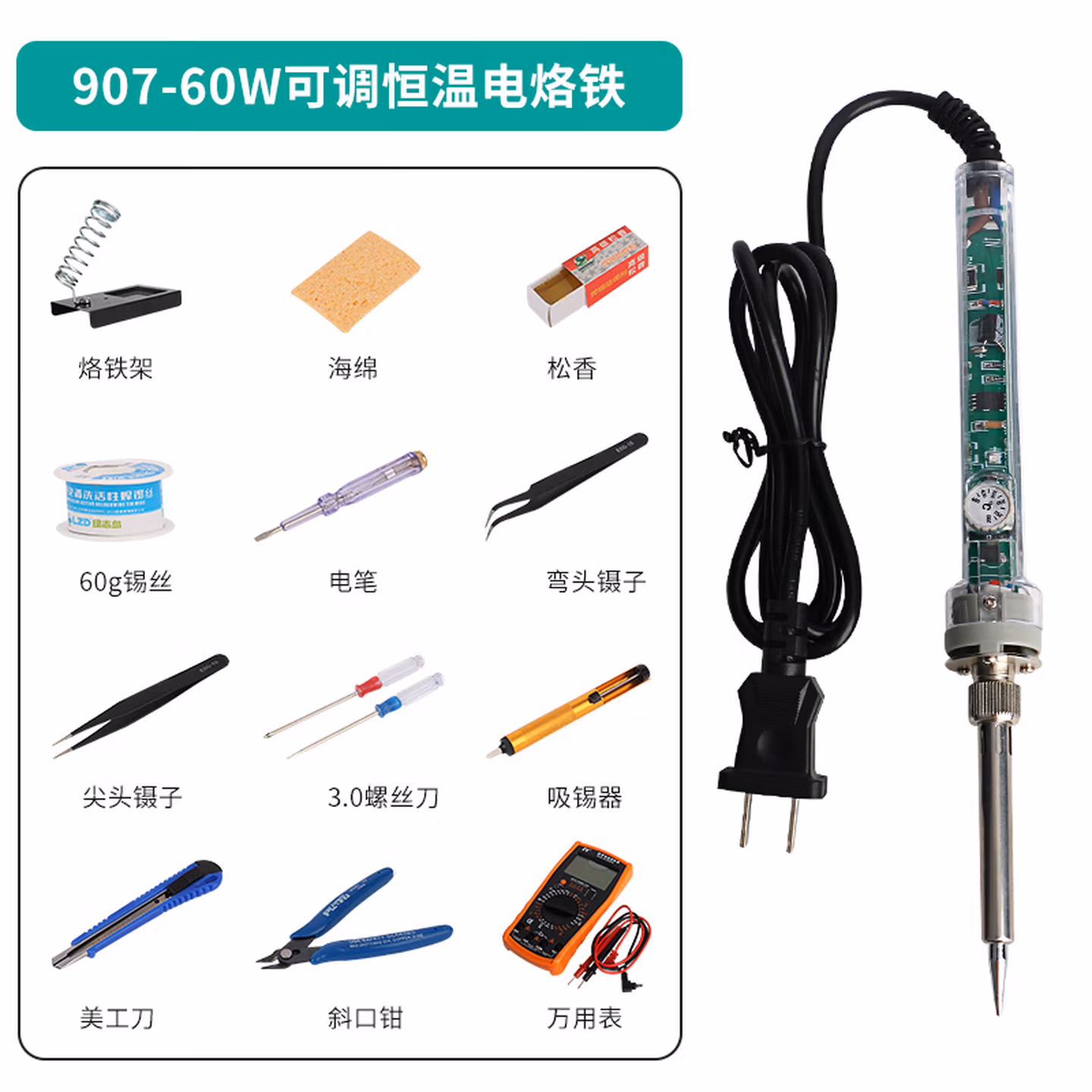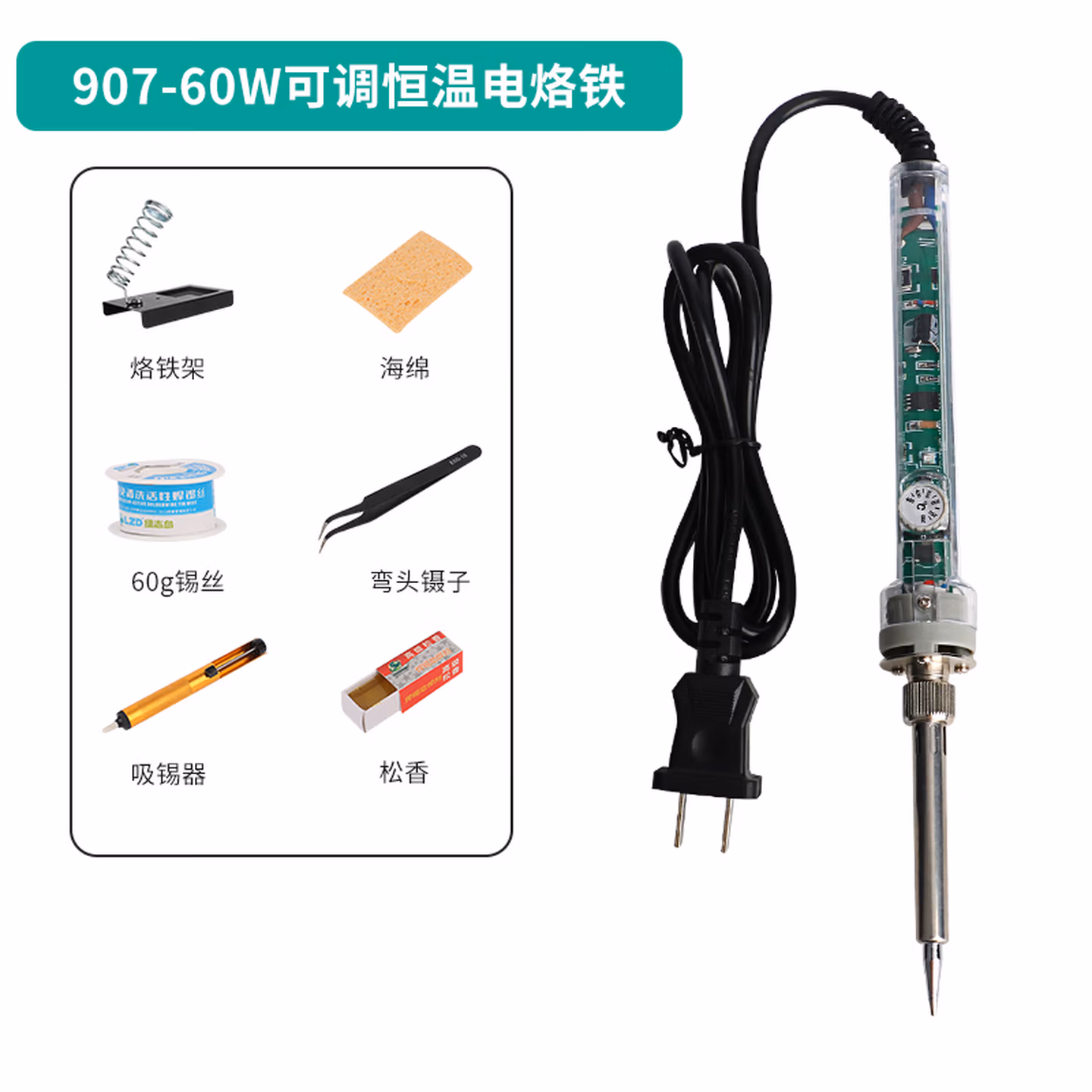 > 907电烙铁大功率内热式恒温6挡调温60W电焊笔焊锡枪工业用电洛铁 标配907烙铁(刀头)