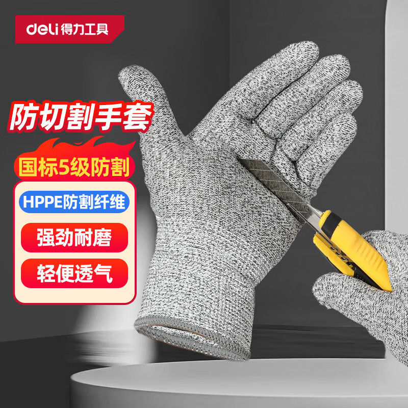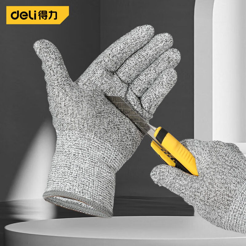 > 得力(deli)防切割手套加厚耐磨工作耐寒耐油工业汽修防油污L码1双白色