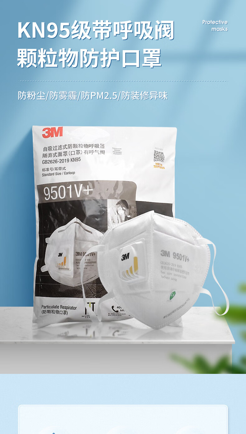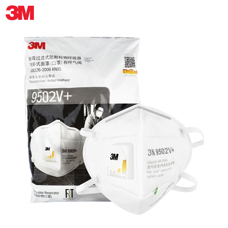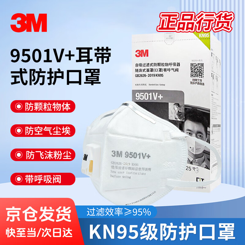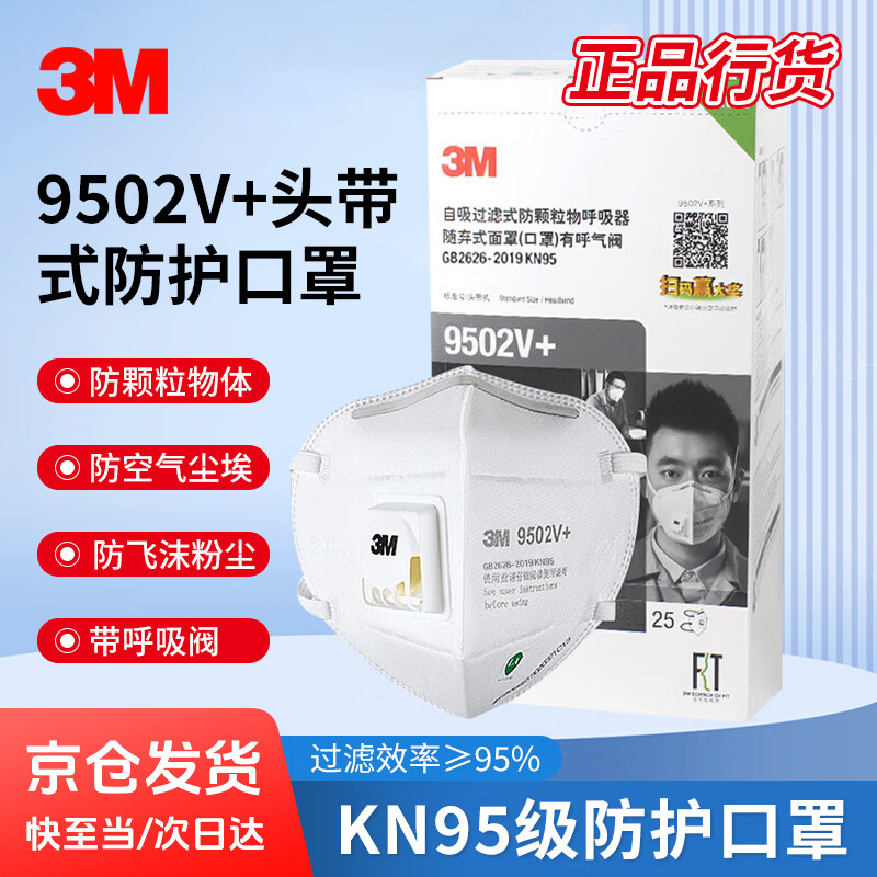 > 3M口罩KN95防粉尘飞沫颗粒物雾霾带呼吸阀针织带头戴式 9502V+ 25个/包