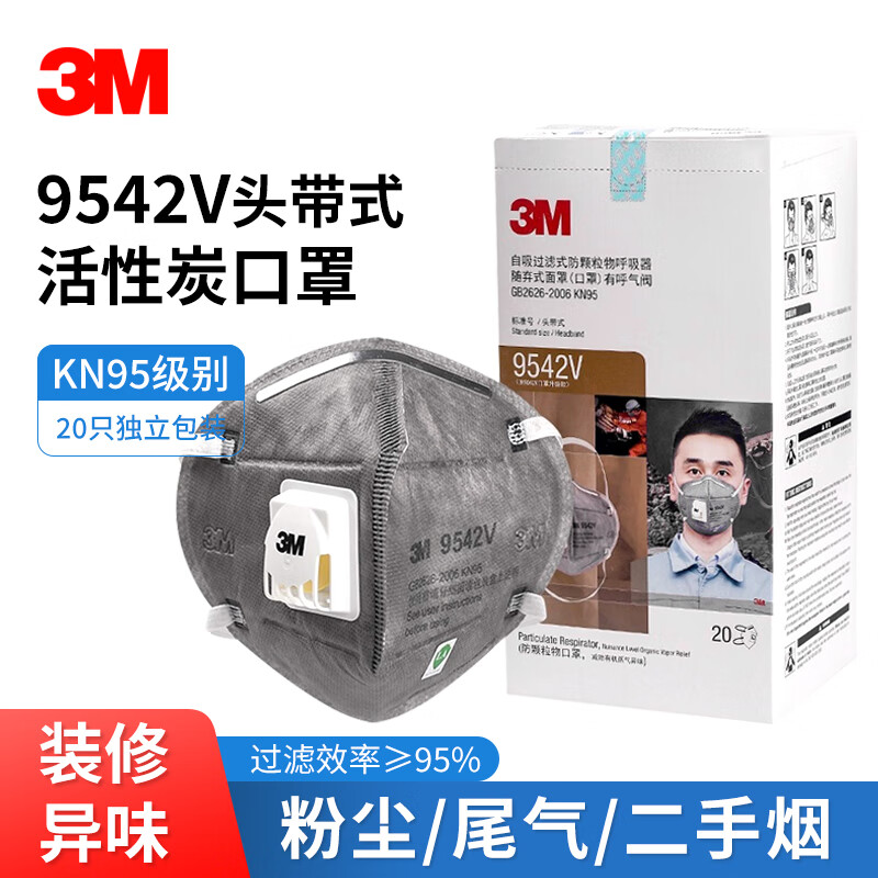 3M 9542 防雾霾防尘口罩工业粉尘PM2.5防花粉KN95男女通用成人立体口罩独立装 25个/盒