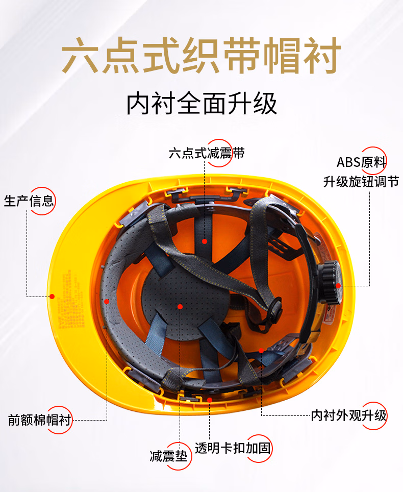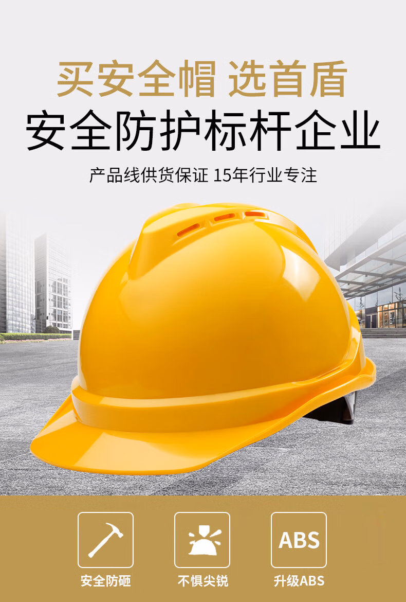 > 首盾 安全帽 高档ABS圆筋透气国标加厚防砸电绝缘抗冲击头盔建筑施工批发 黄色【旋钮款】