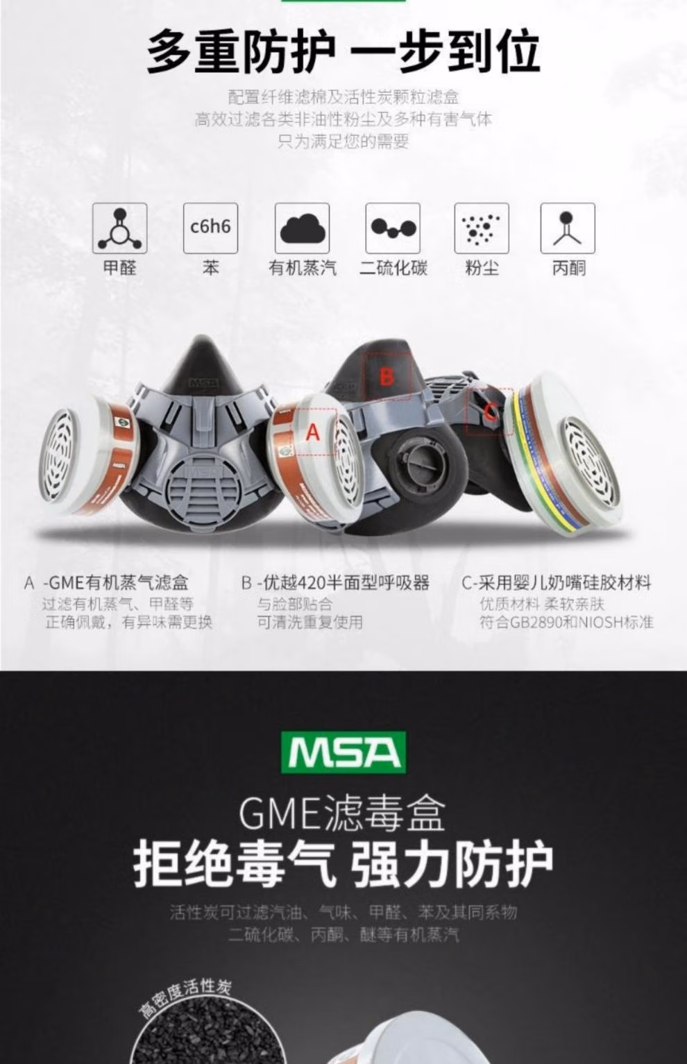 梅思安dvantage420半面罩呼吸器防尘毒半面具中号 10146376面罩(不含滤盒)