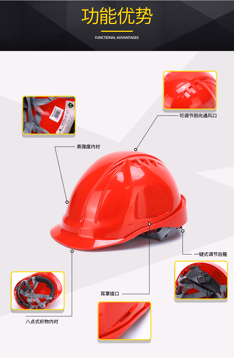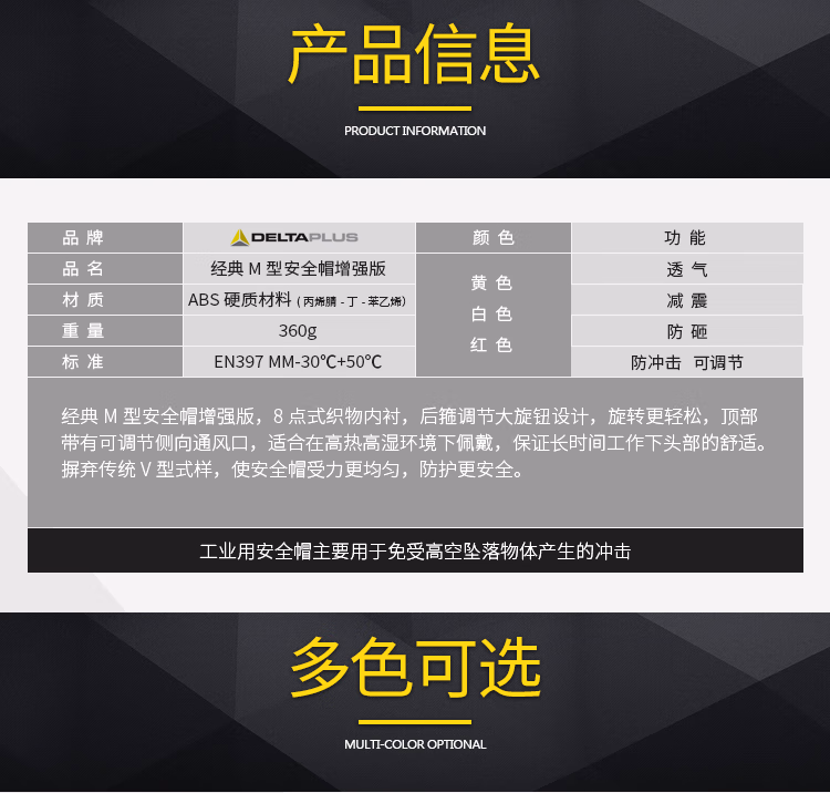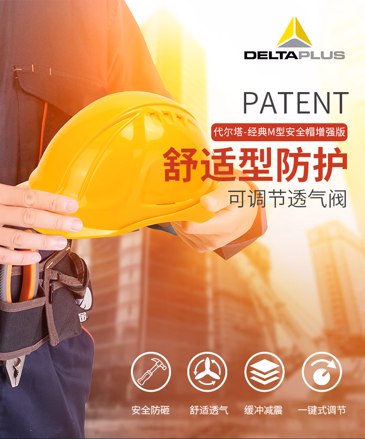 > 代尔塔(Deltaplus) ABS经典M型安全帽 防冲击可调节透气阀8点式织物内衬 102106 红色