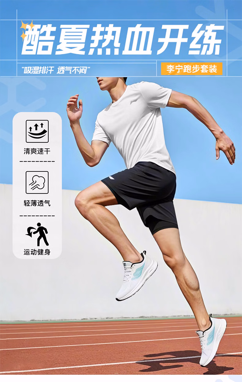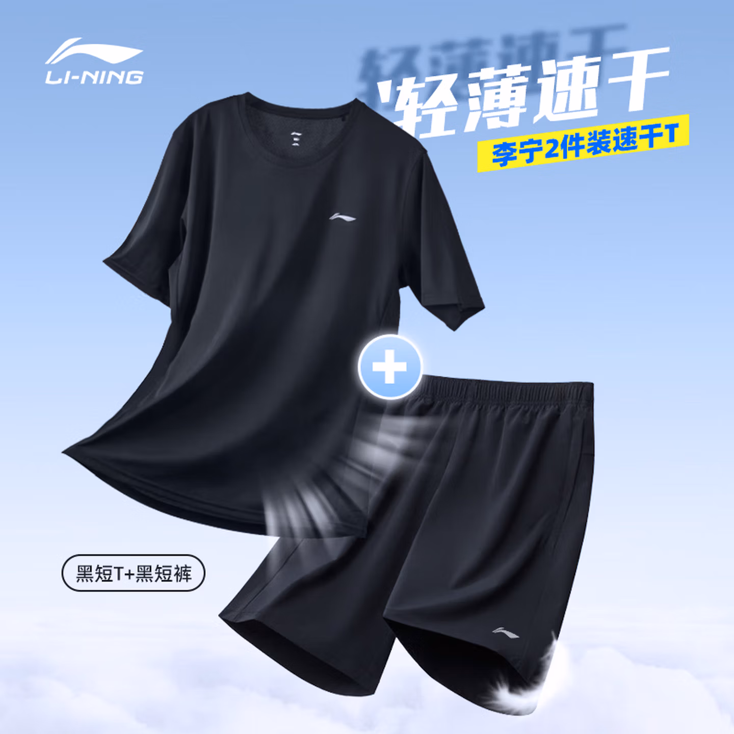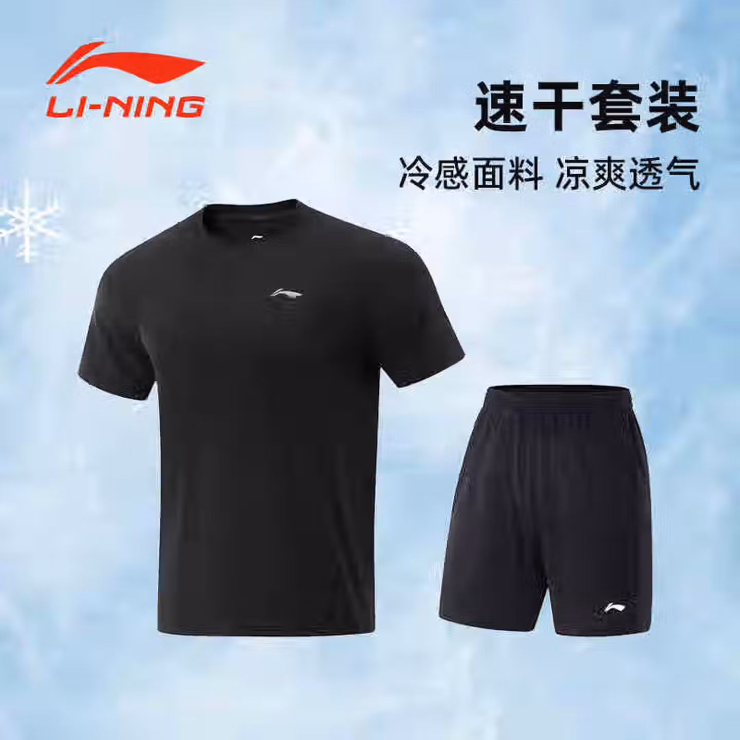 > 李宁运动套装男速干跑步冰丝短袖短裤夏羽毛球中考体育体测健身训练服