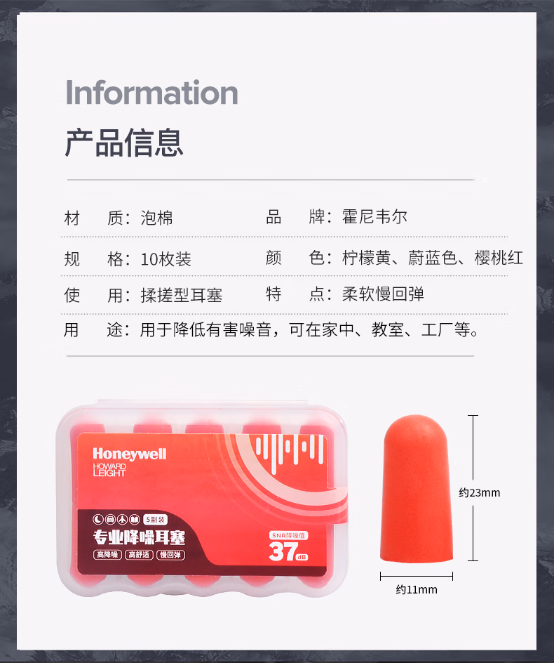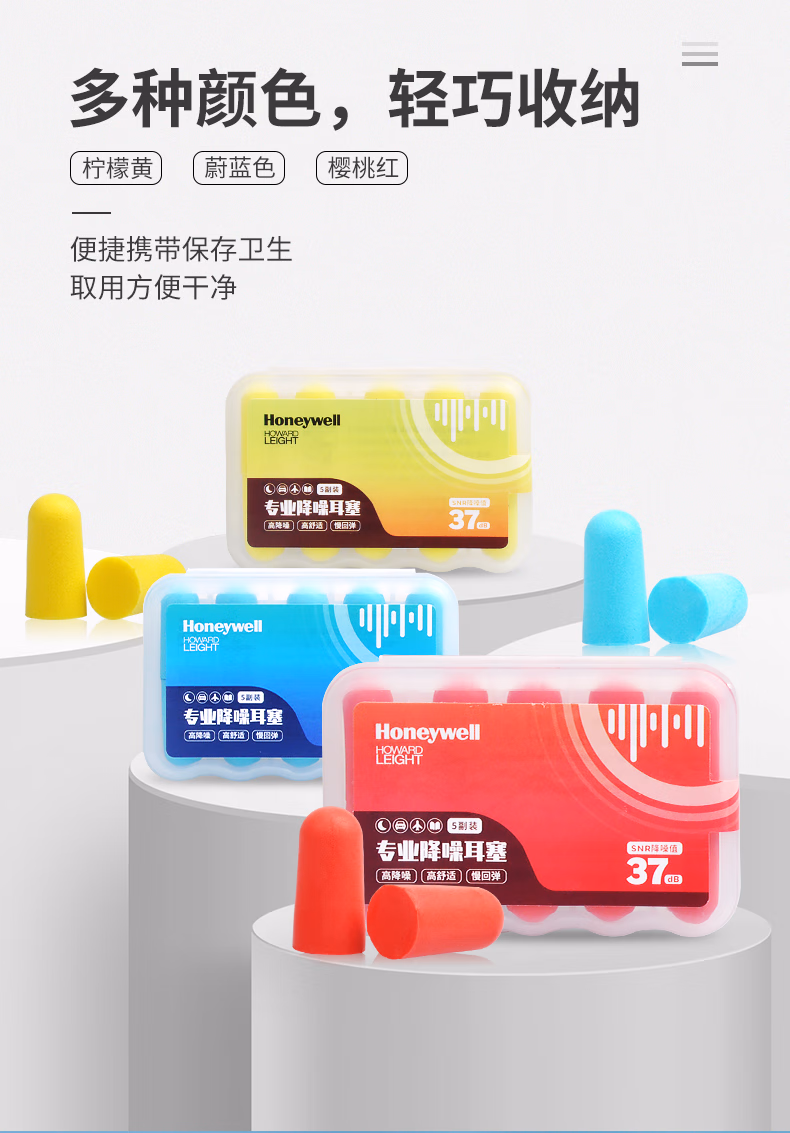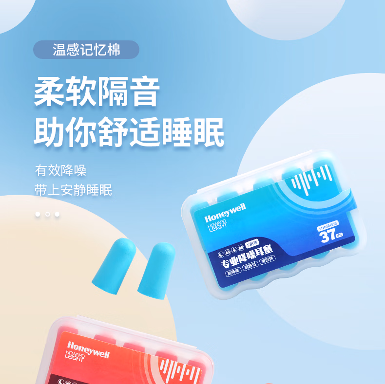 > 霍尼韦尔隔音耳塞男女睡眠睡觉学习舒适防噪音静音降噪防呼噜 8副装【1包】无线+赠耳塞盒1个 M