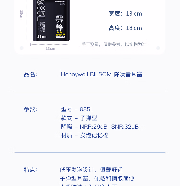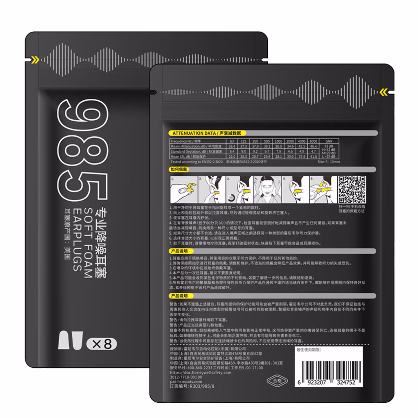 > 霍尼韦尔(Honeywell) 专业降噪耳塞 985女生宿舍学习睡眠隔音阅读睡觉小耳道 8副/包