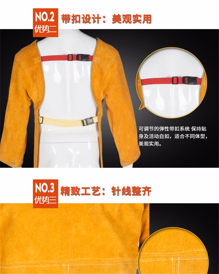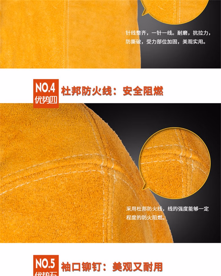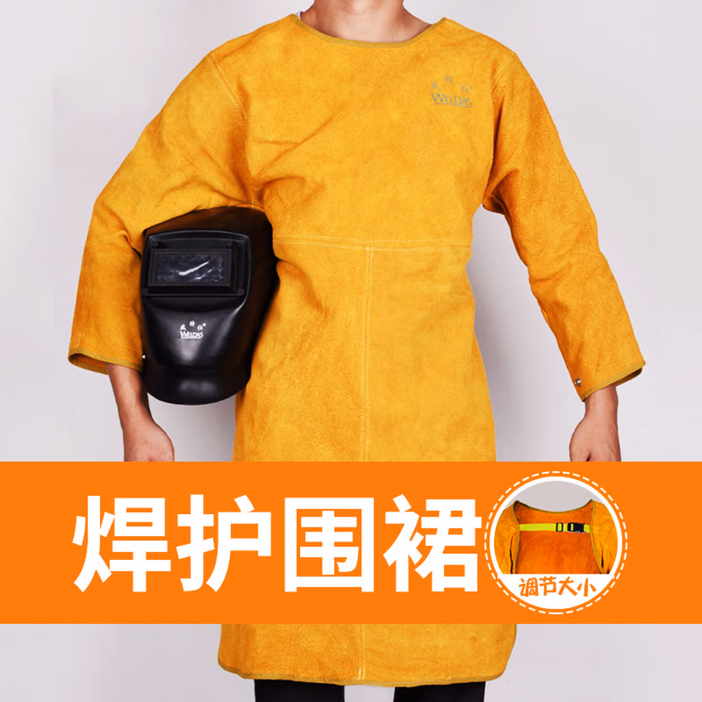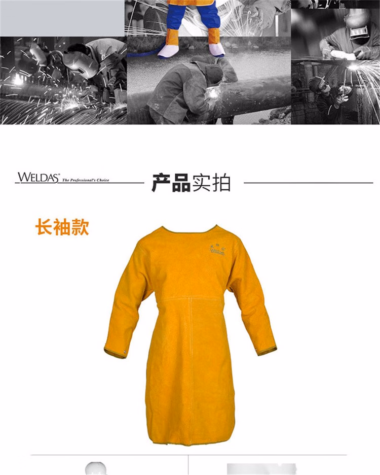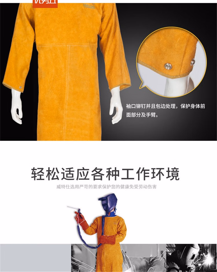 > 威特仕焊接焊工电焊带袖护胸皮围裙防烫隔热耐磨围裙防火金黄色皮围裙 44-1847L
