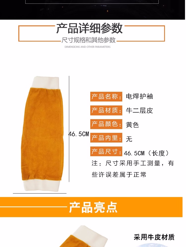> 佳护 加厚长牛皮电焊袖套耐脏耐烫焊工焊接护袖劳保烧焊松紧套袖 牛皮套袖:魔术贴款
