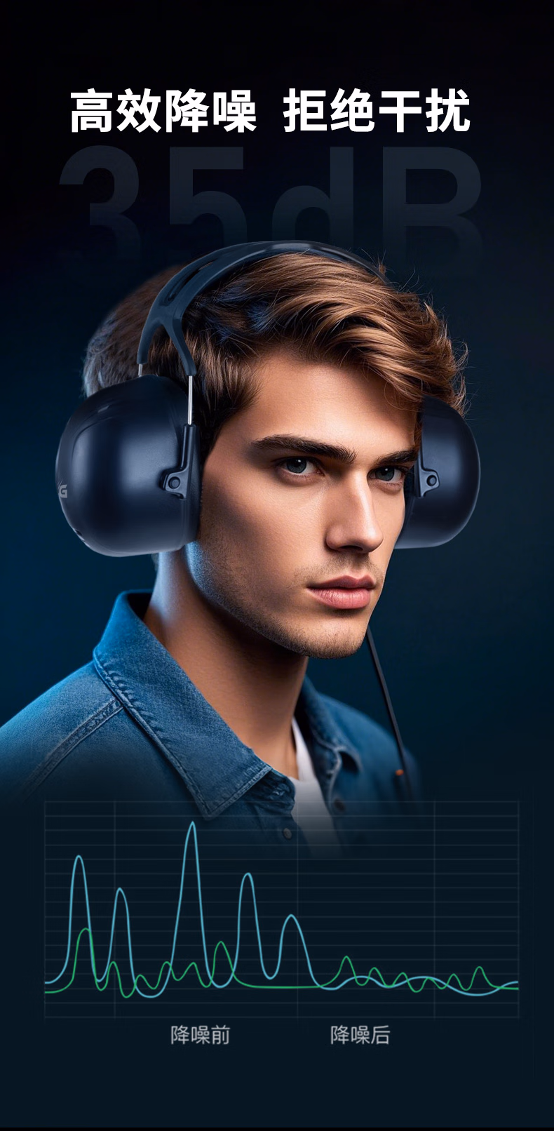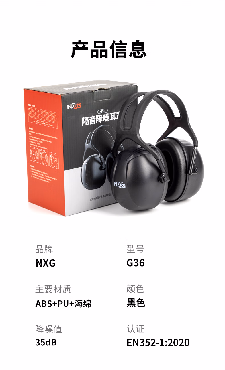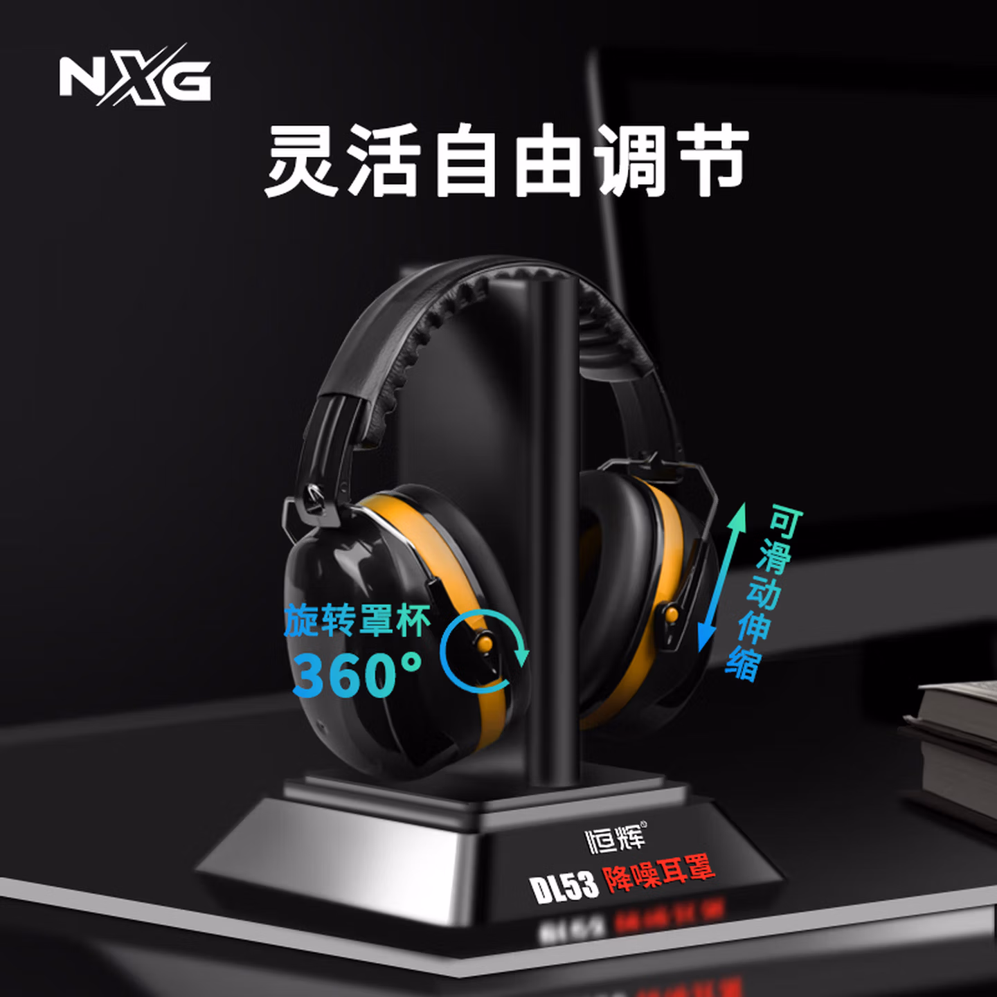 > NXG隔音耳罩 防噪音工业降噪专用 男女学习宿舍打呼噜睡觉工厂车间射击【1个】黄黑色