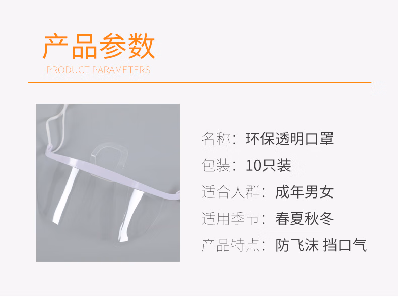 > 贝傅特透明微笑口罩 餐饮酒店口罩 防飞沫口水唾沫防飞溅打饭环保口罩 标准防雾款50个装