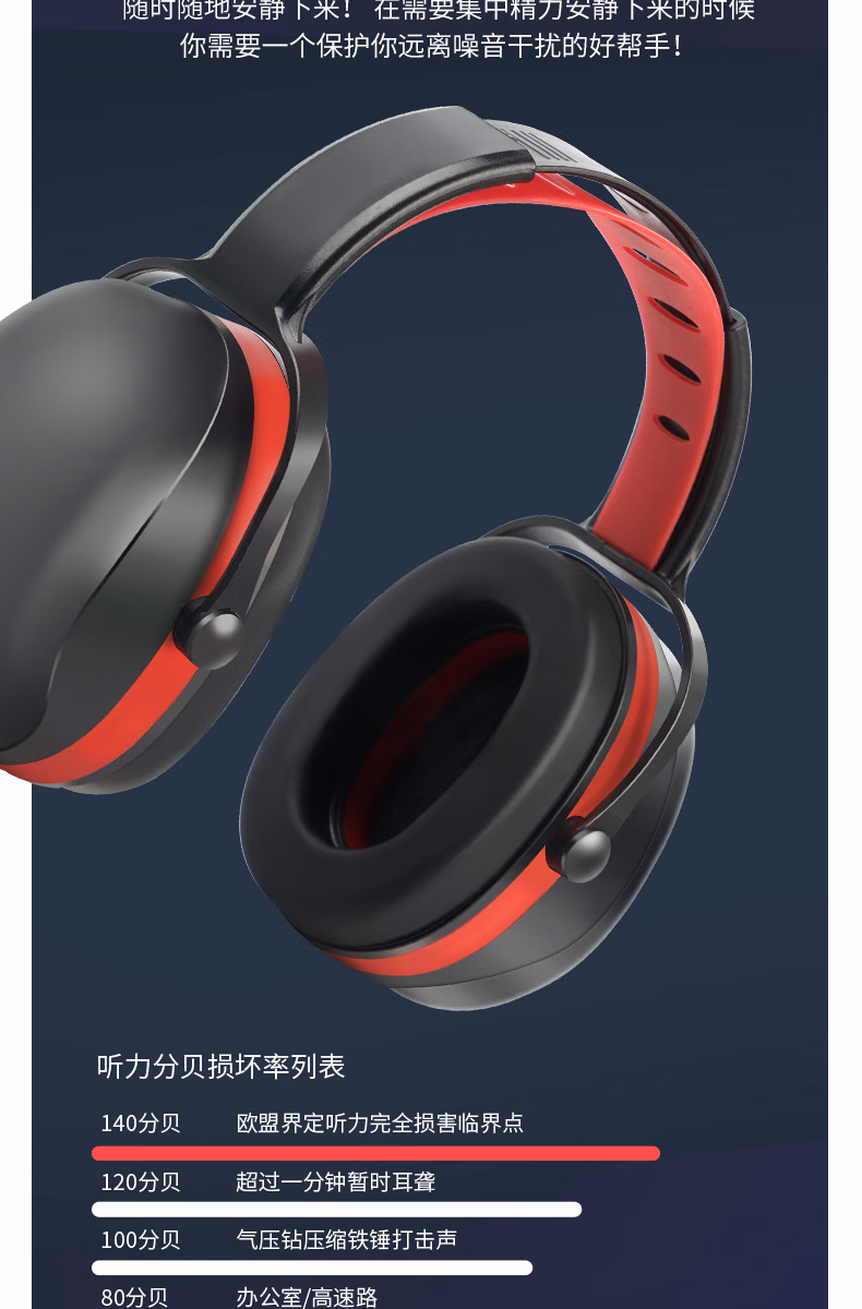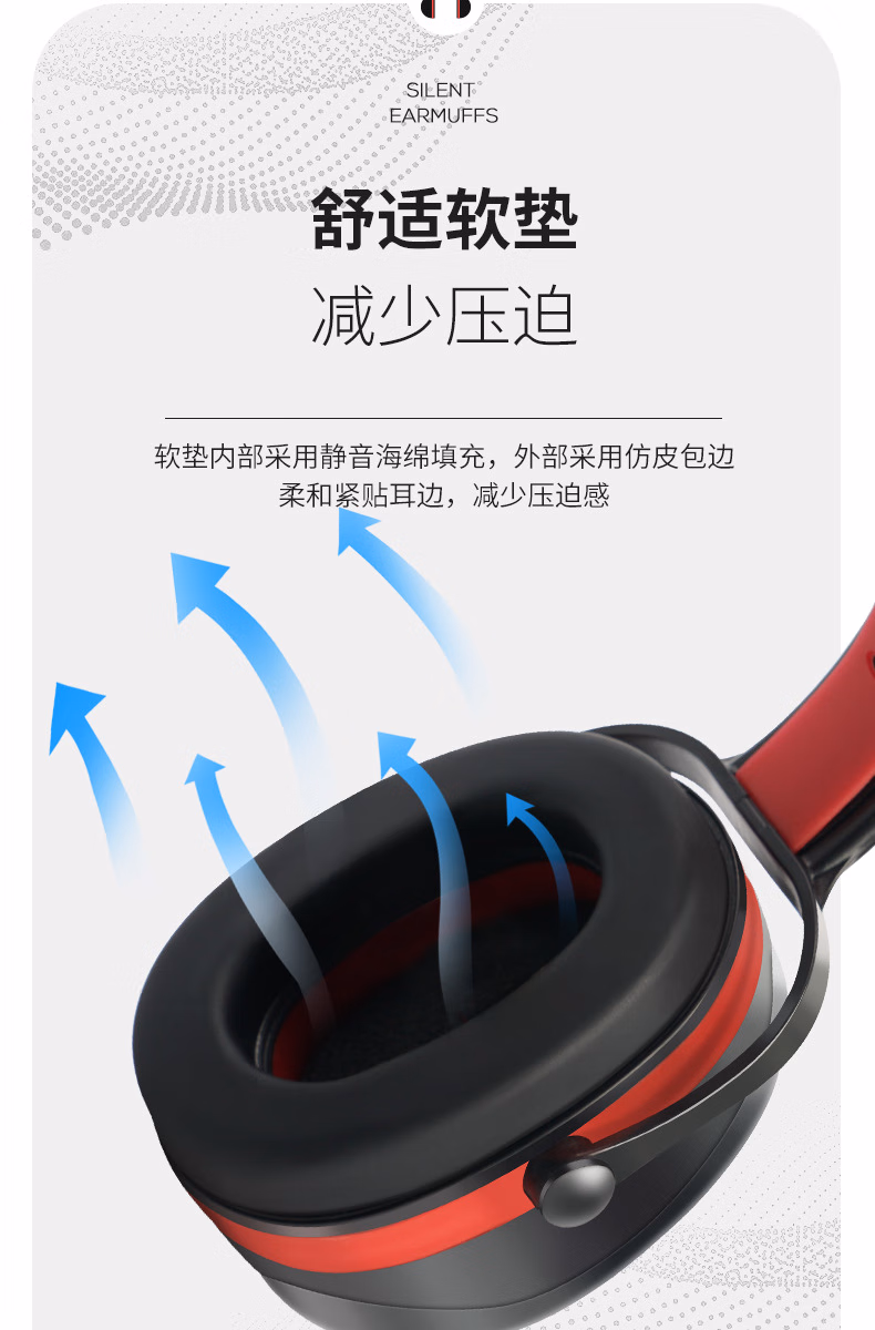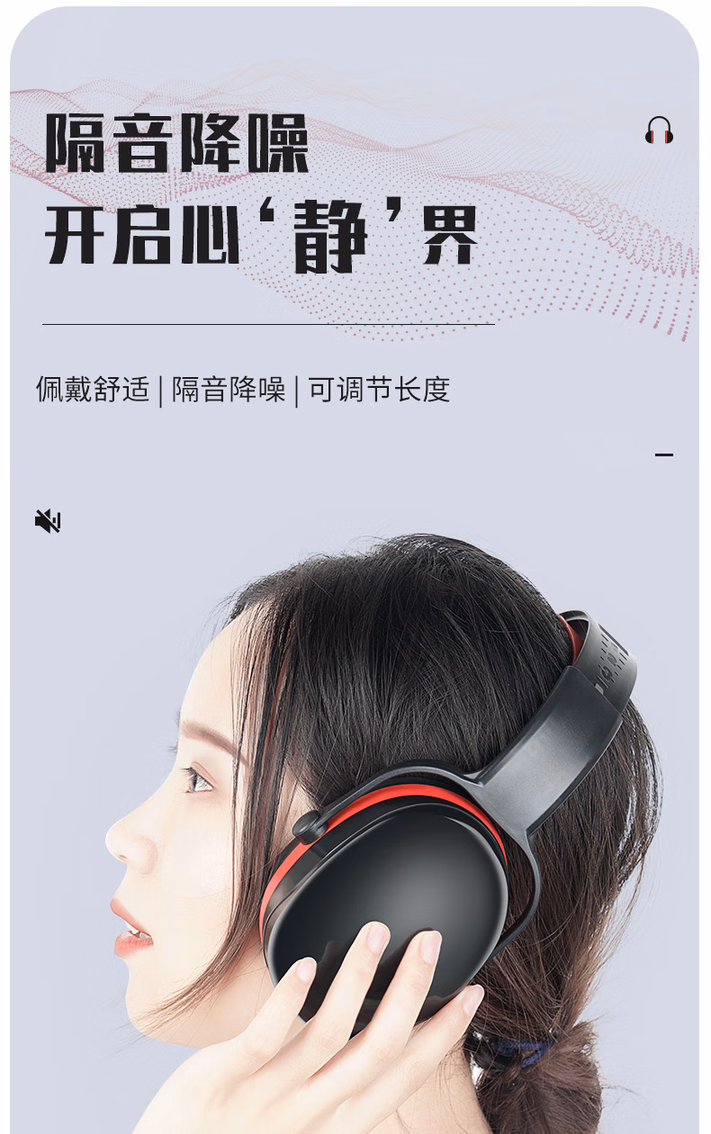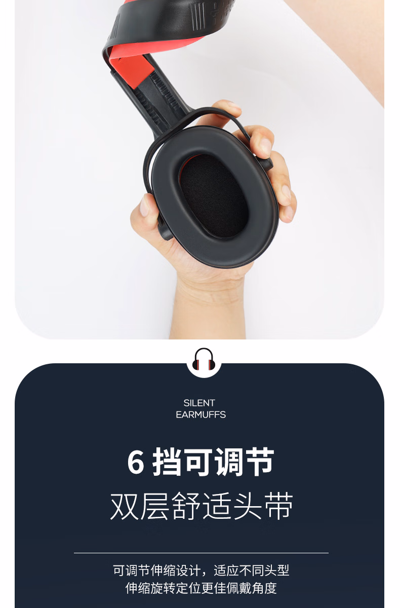 > 嘉柏兰隔音耳罩降噪睡觉耳机睡眠耳塞专用超强工业静音3m耳罩侧睡神器 黑红伸缩款【舒适降噪】