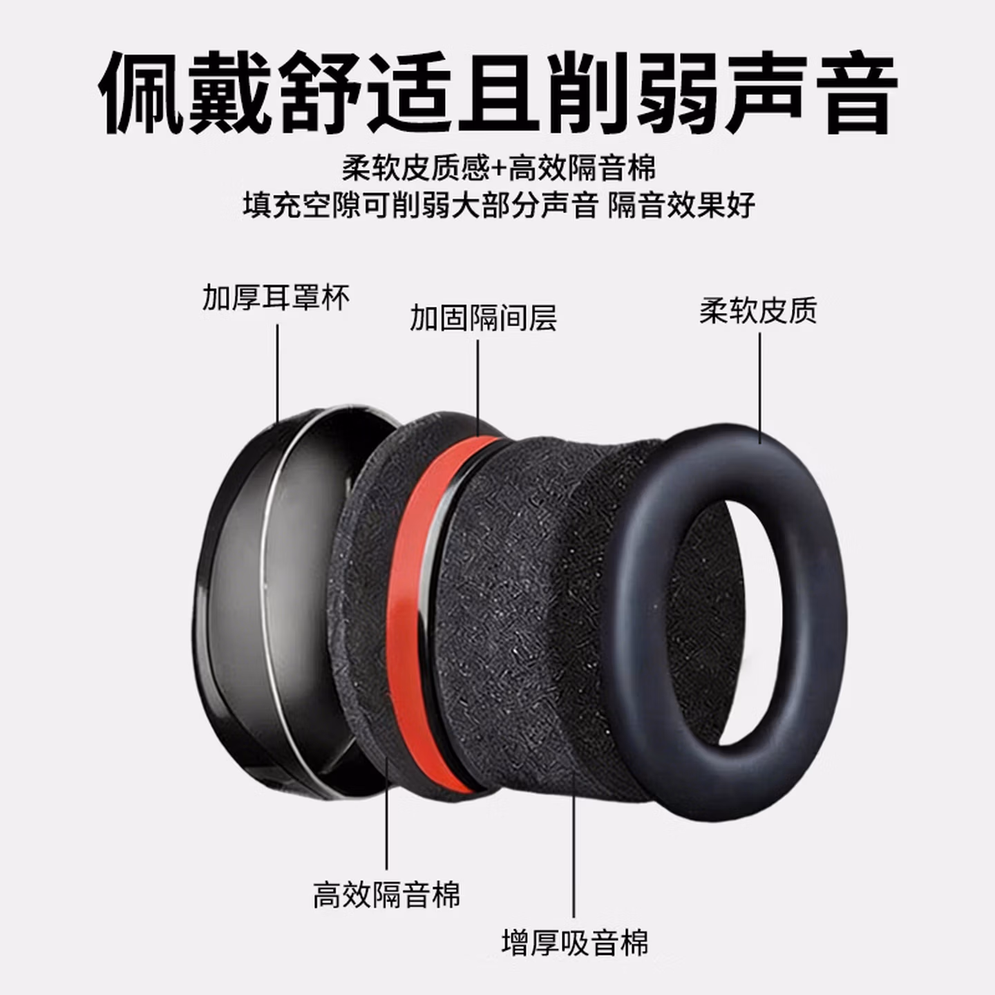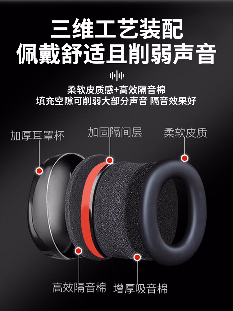 > 贝傅特隔音耳罩防噪音耳罩睡眠用头戴式专业降噪神器防干扰静音耳机工厂工业护耳黑红款