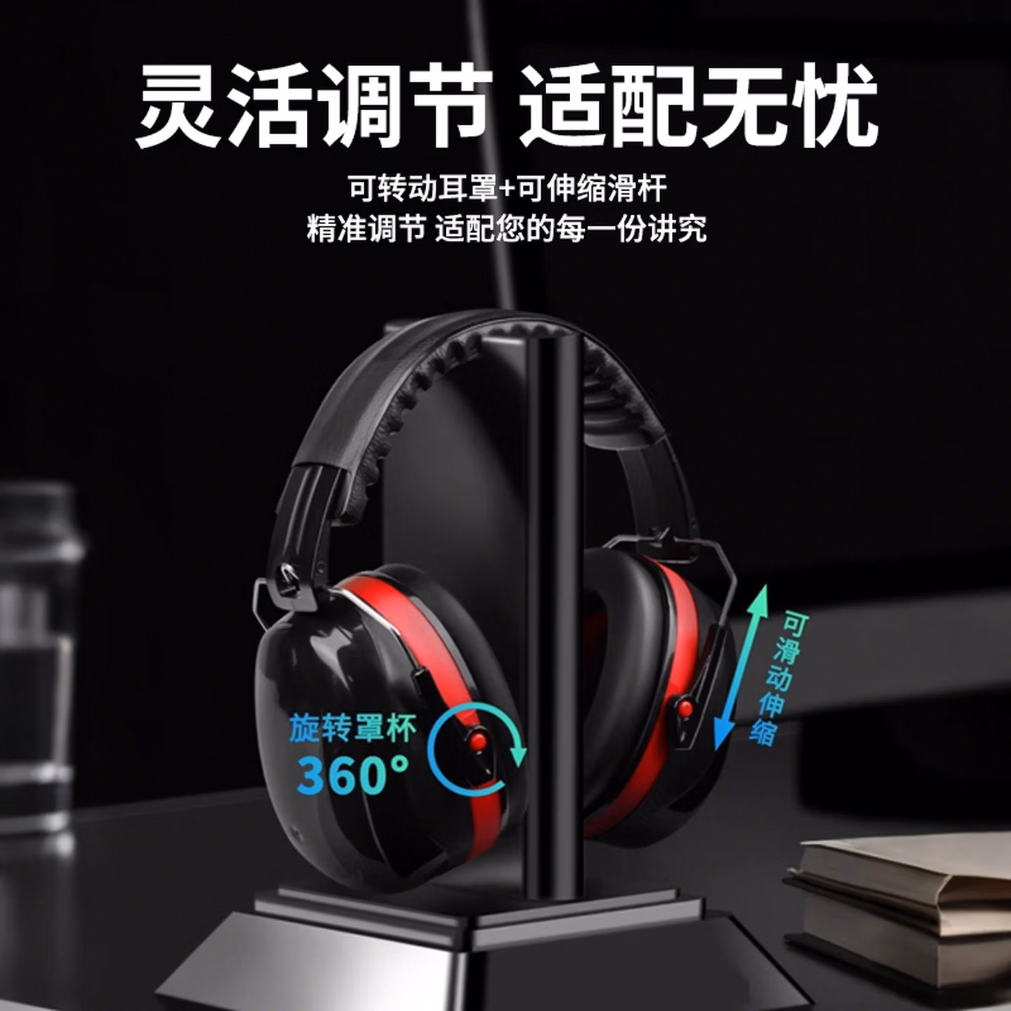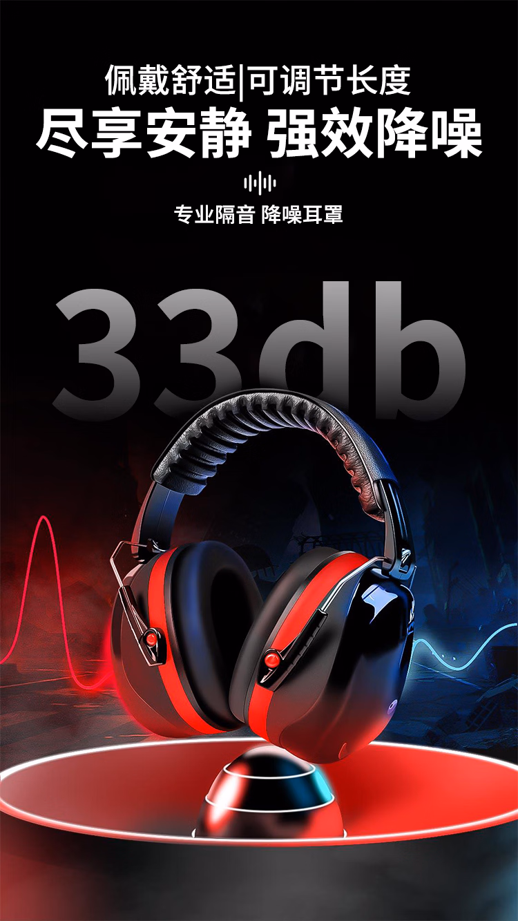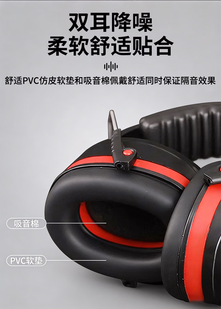 隔音耳罩黑红款