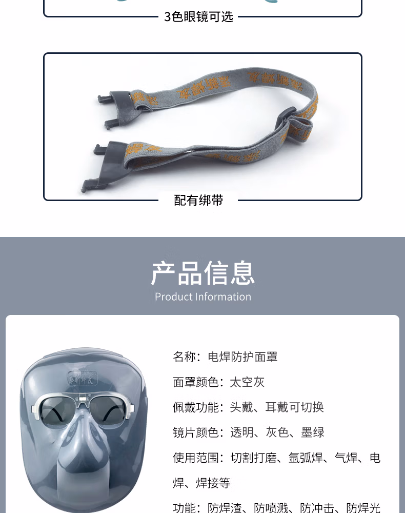 > 添新焊友 电焊面罩 头戴式可拆卸 BX-6面罩配灰色眼镜/1套